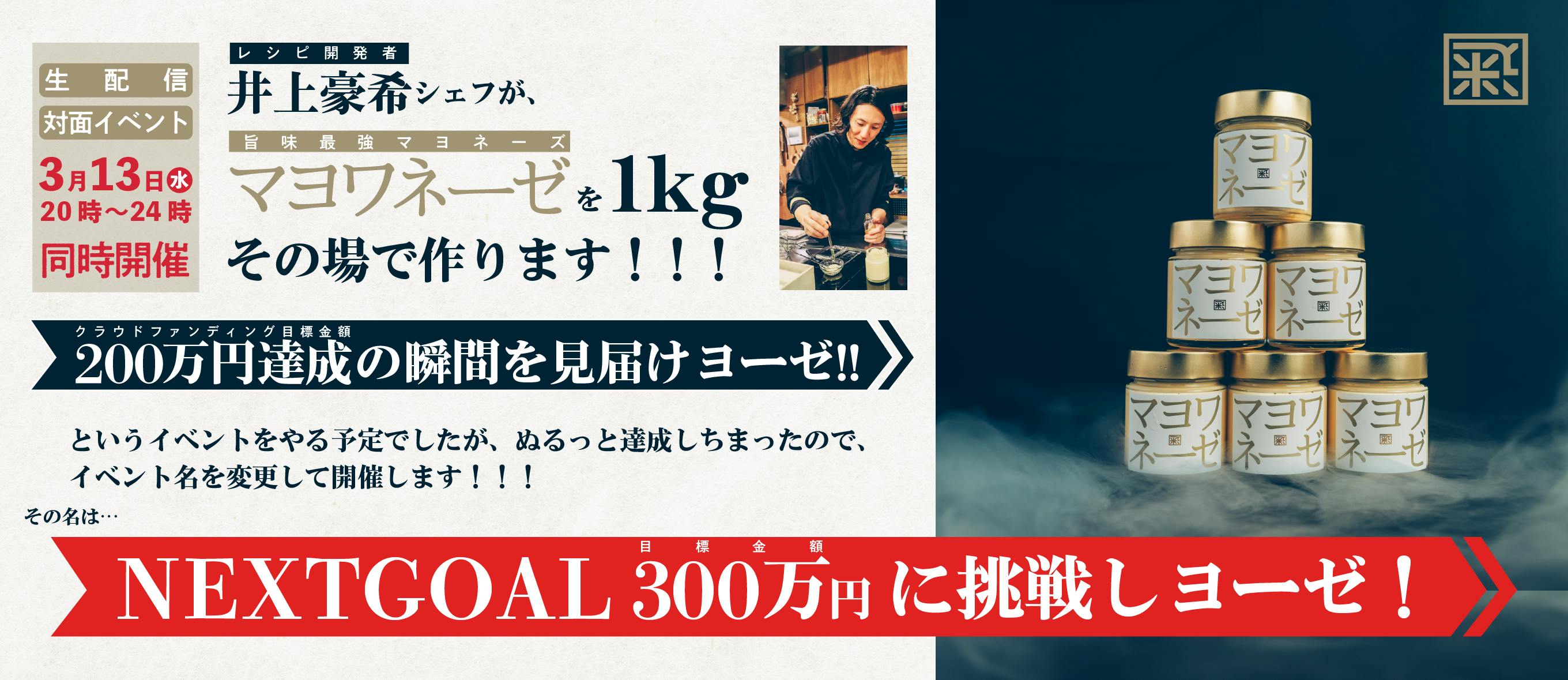 「『マヨワネーゼ』目標金額200万円達成の瞬間を皆様と一緒に見届けヨーゼ‼︎」というイベントを開催予定でしたが、イベント開催前日の12日に目標金額を達成してしまいました笑
