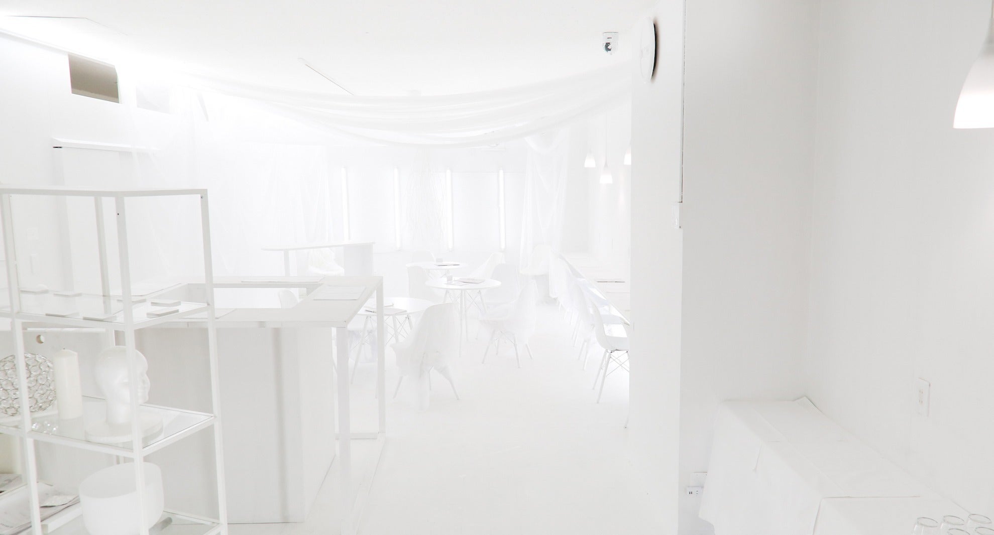 逃げBarはご覧の通り見渡す限り真っ白な空間です。(元々普通の茶色い穏やかなカフェだった場所を全てDIYで真っ白にしました)ここにいるときは誰もが「何者でもない真っ白な自分として居られるように」「クリアな思考で見つめ直せるように」と白一色の空間を作り込みました。