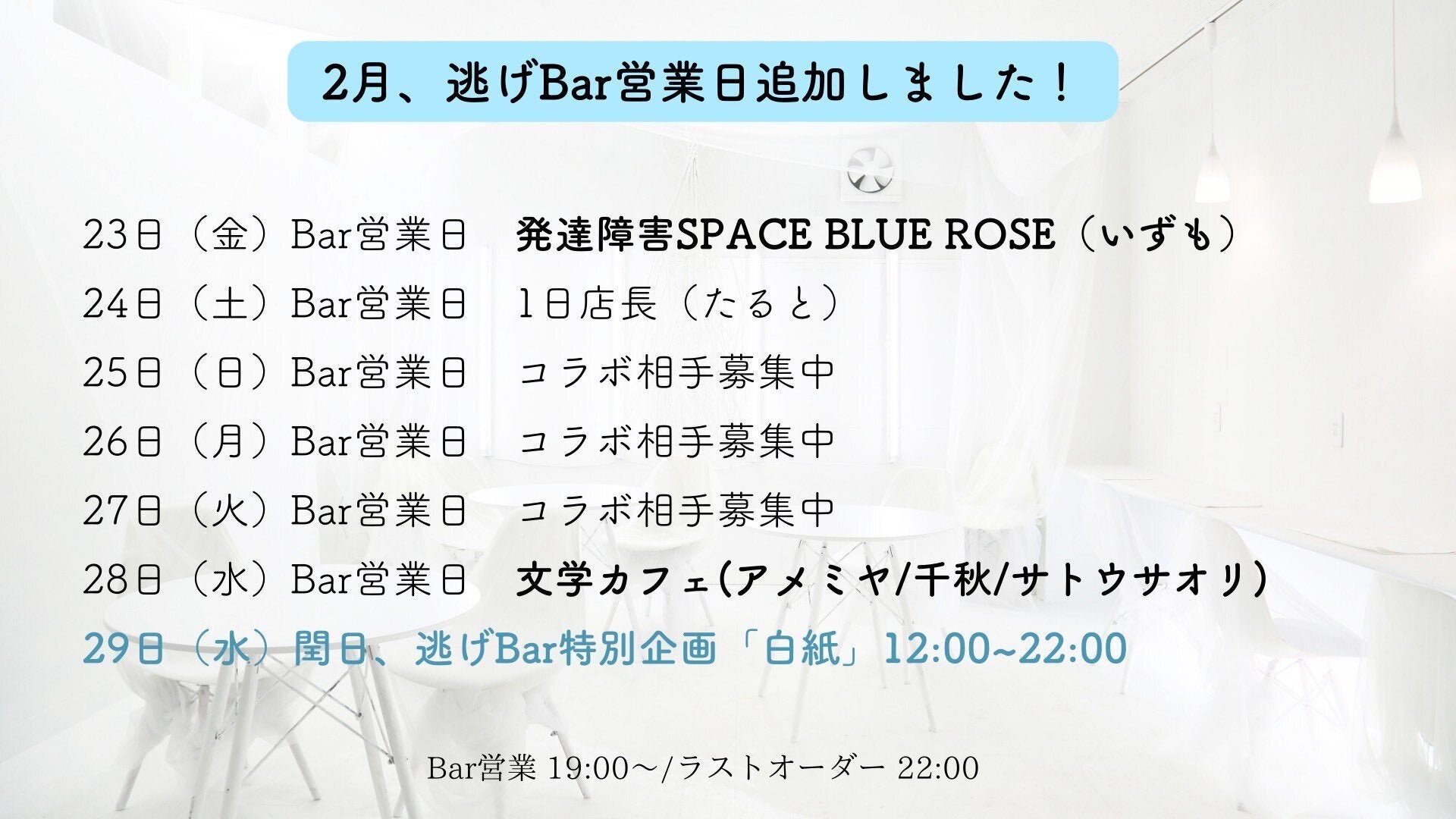 23日からクラファン終わるまで毎日逃げBarを開くことにしました!