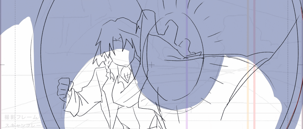 制作当初は、描き手が見つからない、何度もリテイクが必要、といった困難なカットが大量に存在しましたが、現在は対処できていないカットが4つまで減りました。全体のレイアウト作業はほぼ完成の段階に入っています。