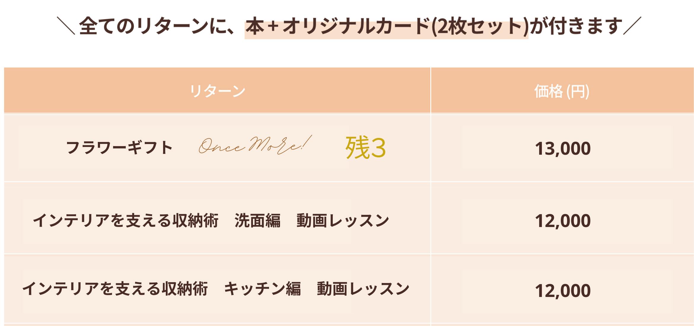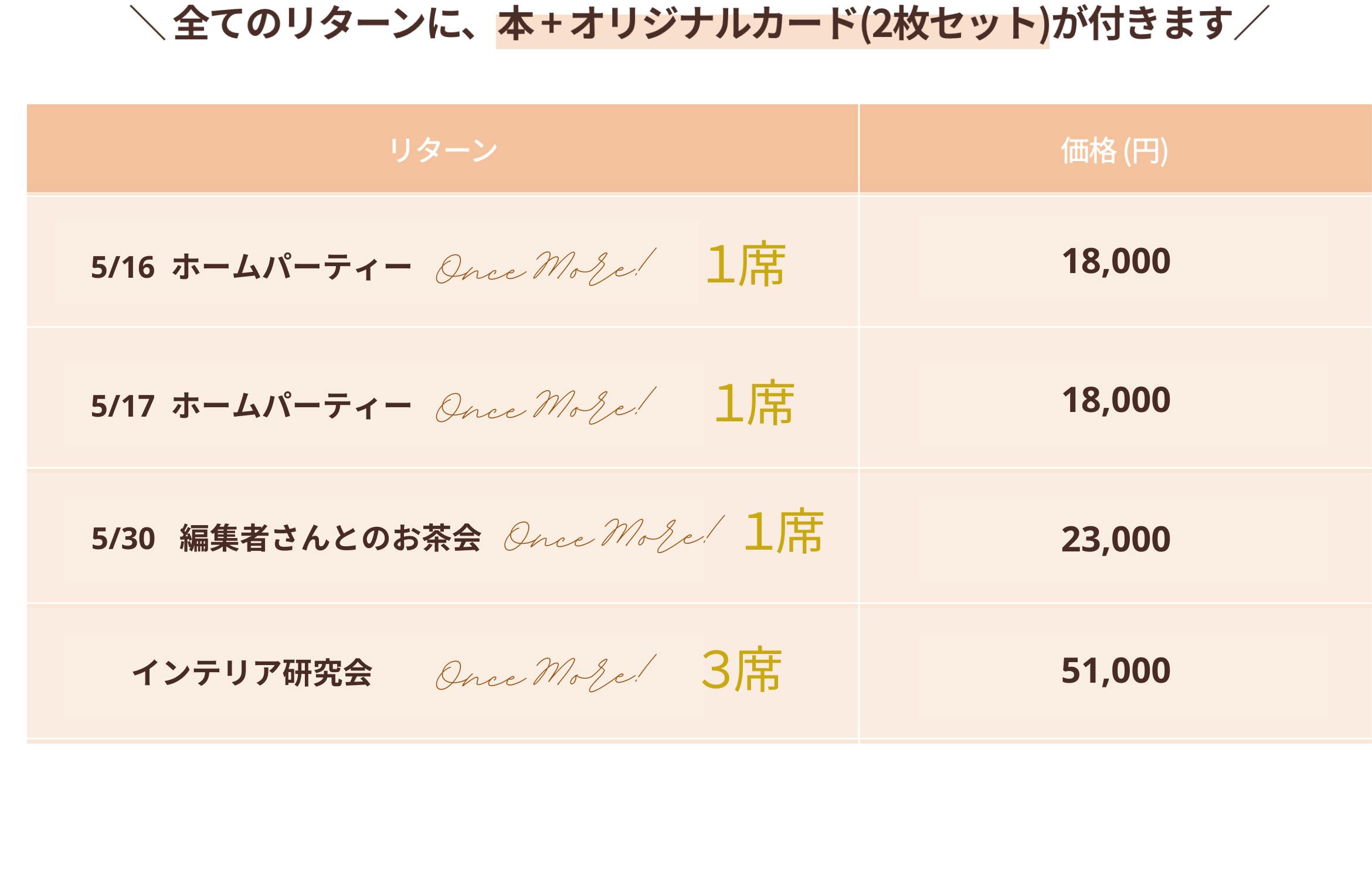 リターンでは、「物」だけでなく、「選んだ過程や思い出」も⼤切に残るようなリターンもご⽤意しました。インテリアの持つ⼒で、何でもない⽇常に幸せを感じてもらうことができたら、著者としてこれほど嬉しいことはありません。