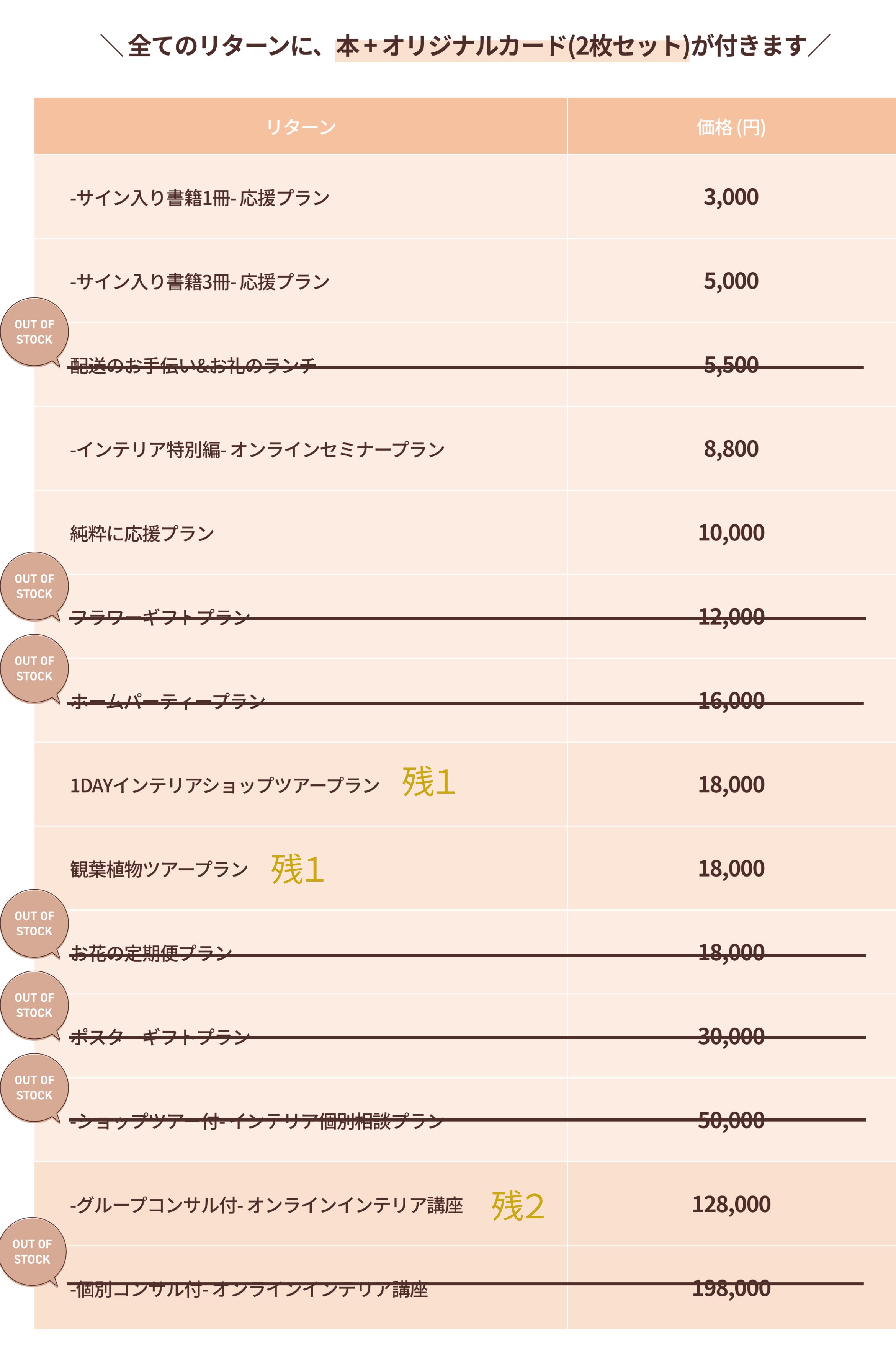 途中でリターンを追加したので、どのリターンが残っているのか分からない。