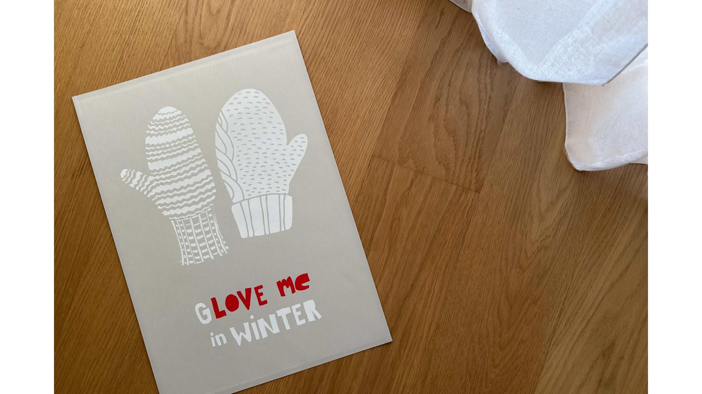 その時、キッチンに飾ったのが、「G LOVE ME WINTER」と書かれた、可愛い⼿袋が描かれた1枚のポスターでした。