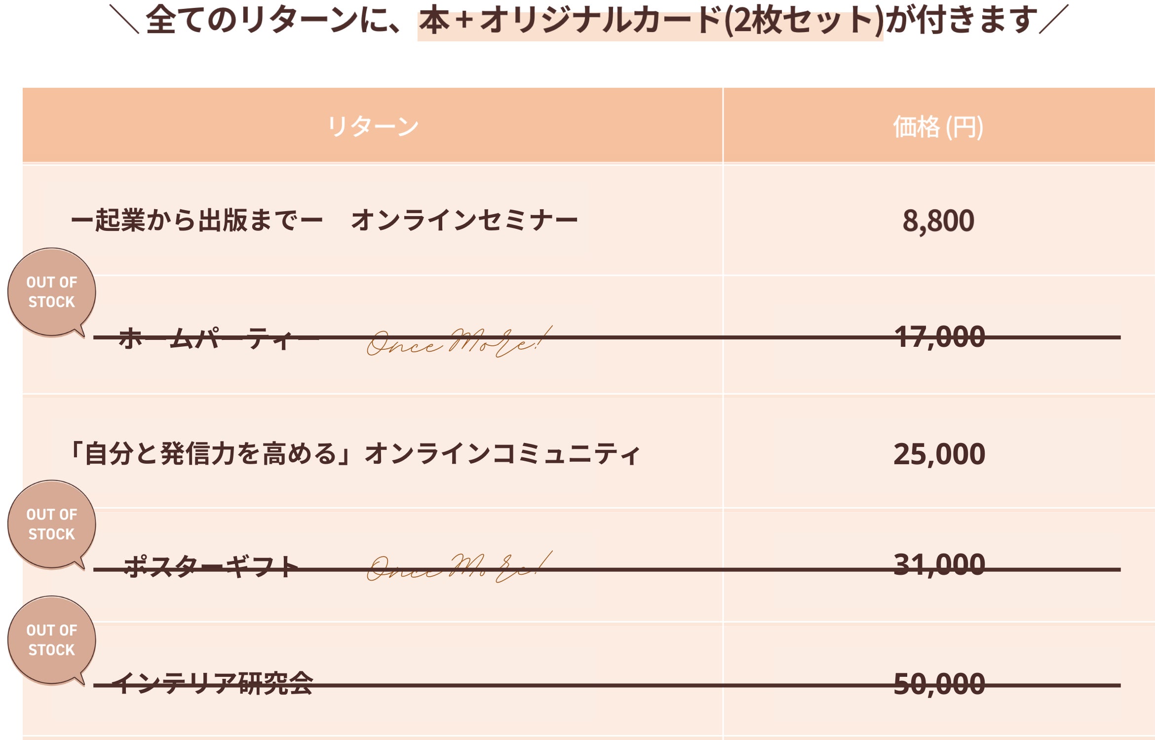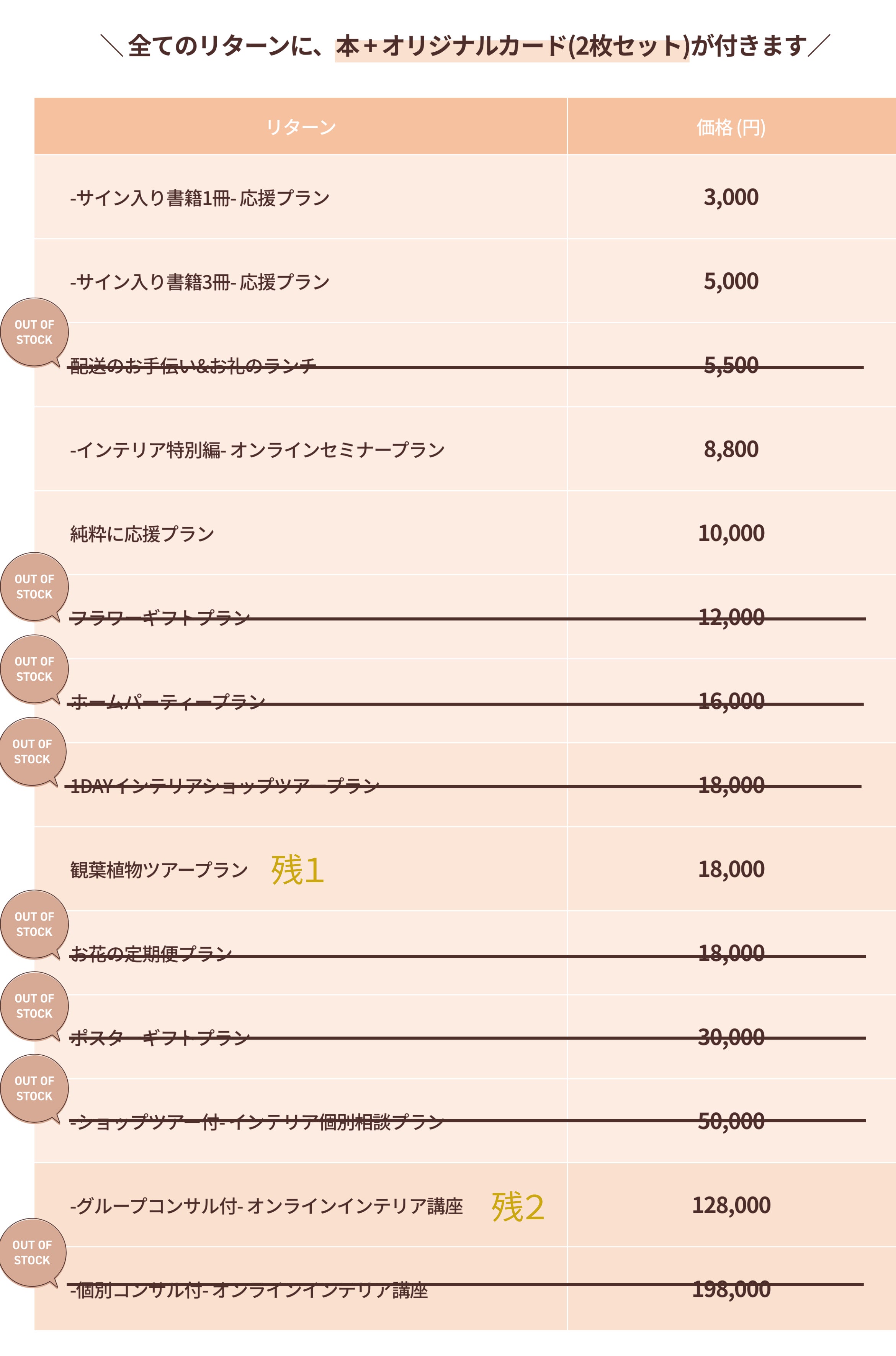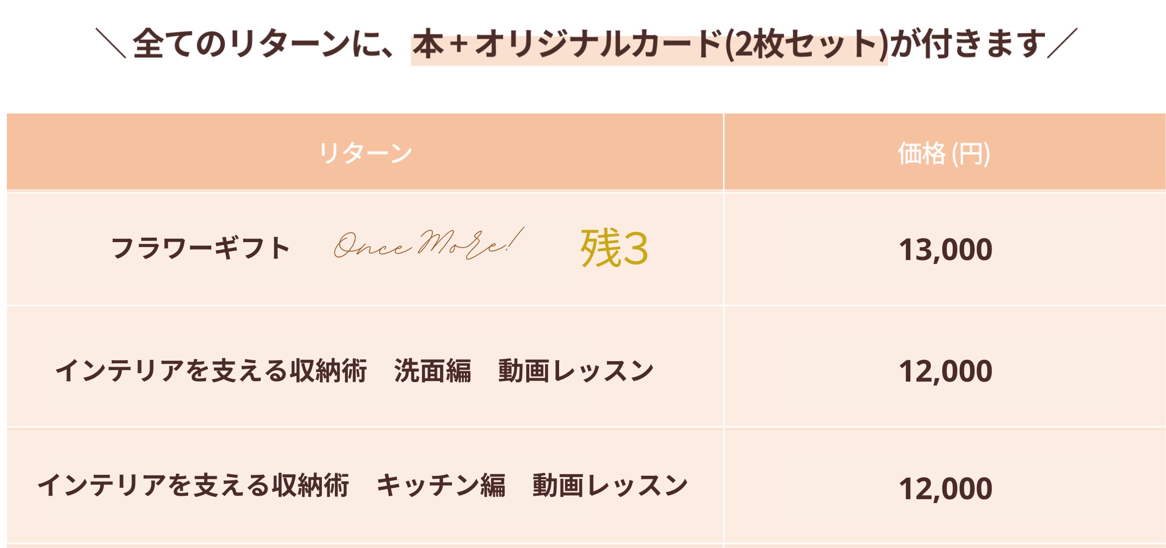 リターンでは、「物」だけでなく、「選んだ過程や思い出」も⼤切に残るようなリターンもご⽤意しました。インテリアの持つ⼒で、何でもない⽇常に幸せを感じてもらうことができたら、著者としてこれほど嬉しいことはありません。