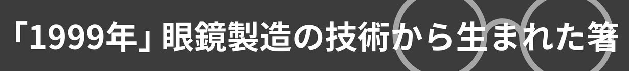 当社は、めがね産地福井県鯖江市で創業55年の眼鏡メーカーです。1999年、当社社長が、息子の箸の先の塗料が剥がれていることに目を留め、「箸の塗料が体に取り込まれているのではないか?」ということに気付き、『食卓は安全でなくてはならない』との思いから、めがねの材料の純チタンを使い、眼鏡製造の技術で、食事用の箸の製造を始めました。