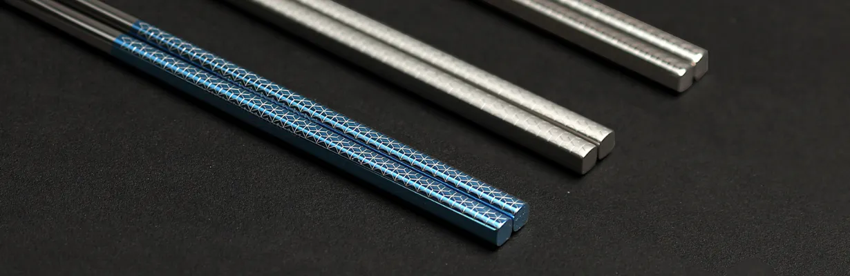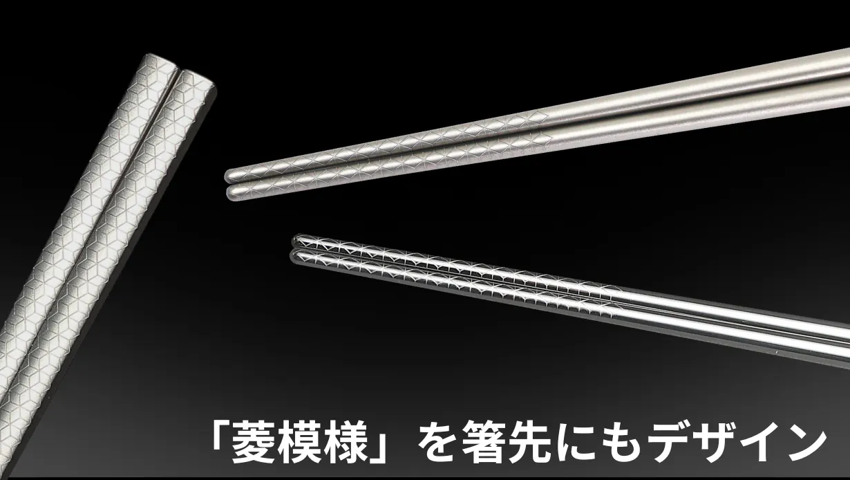 無地のままではちょっと寂しいチタン箸も、模様を彫刻することで、高級感のある落ち着いた雰囲気に仕上がります。