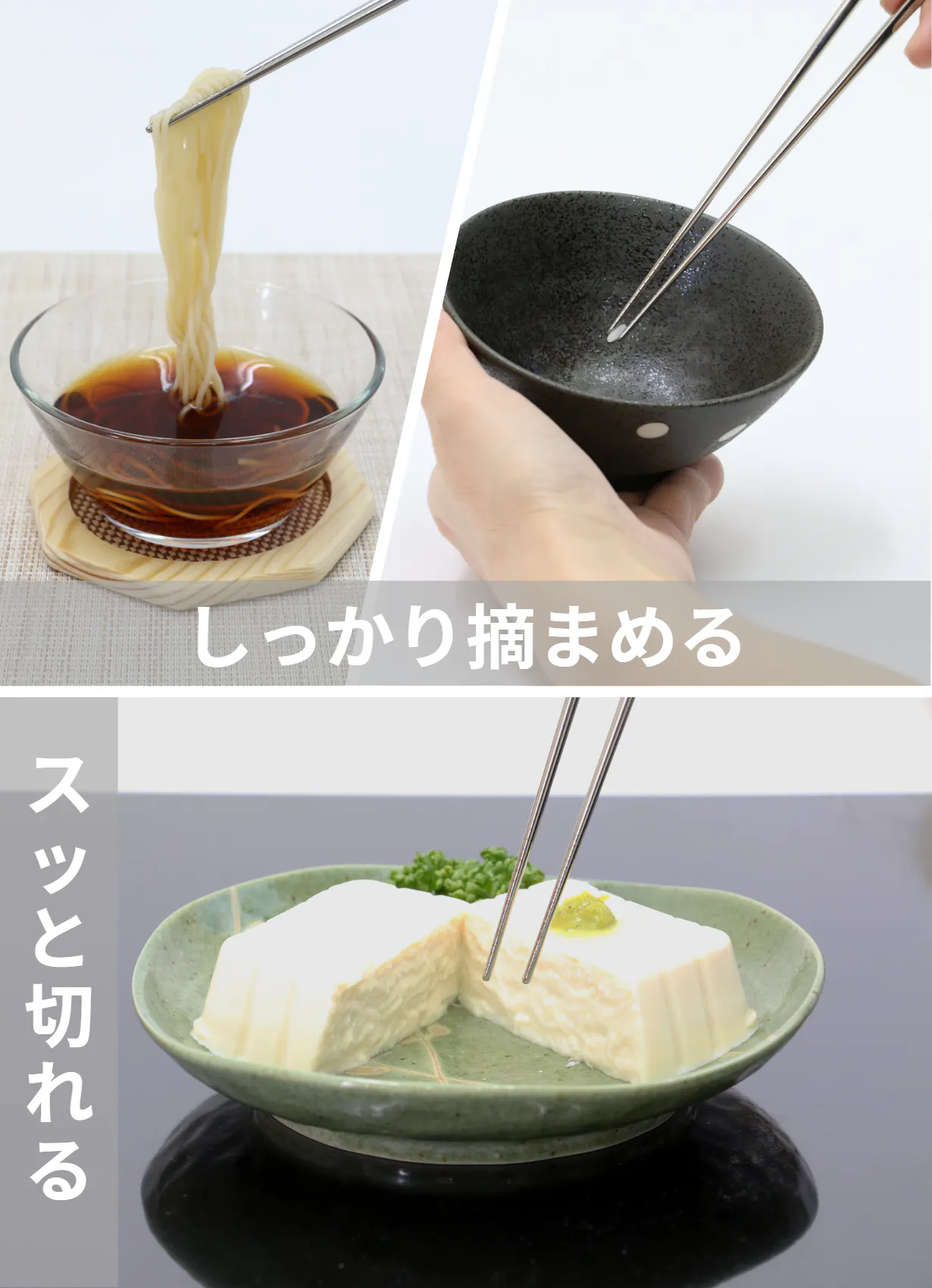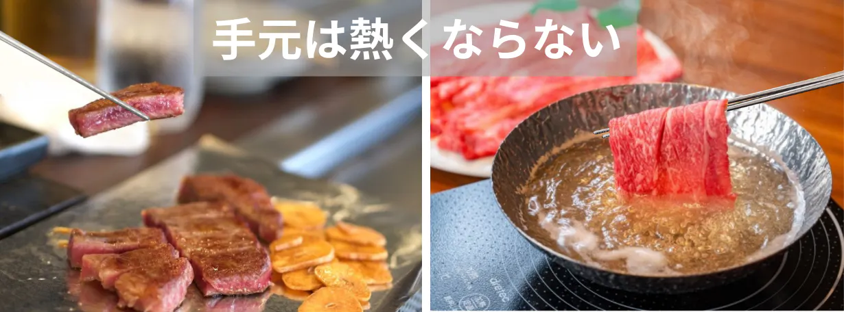 また、熱伝導率が低いことで、箸先が熱いものに触れても手元までは熱が伝わらないので、鉄板焼きや鍋料理などもOKです。(箸先は熱いのでご注意ください)