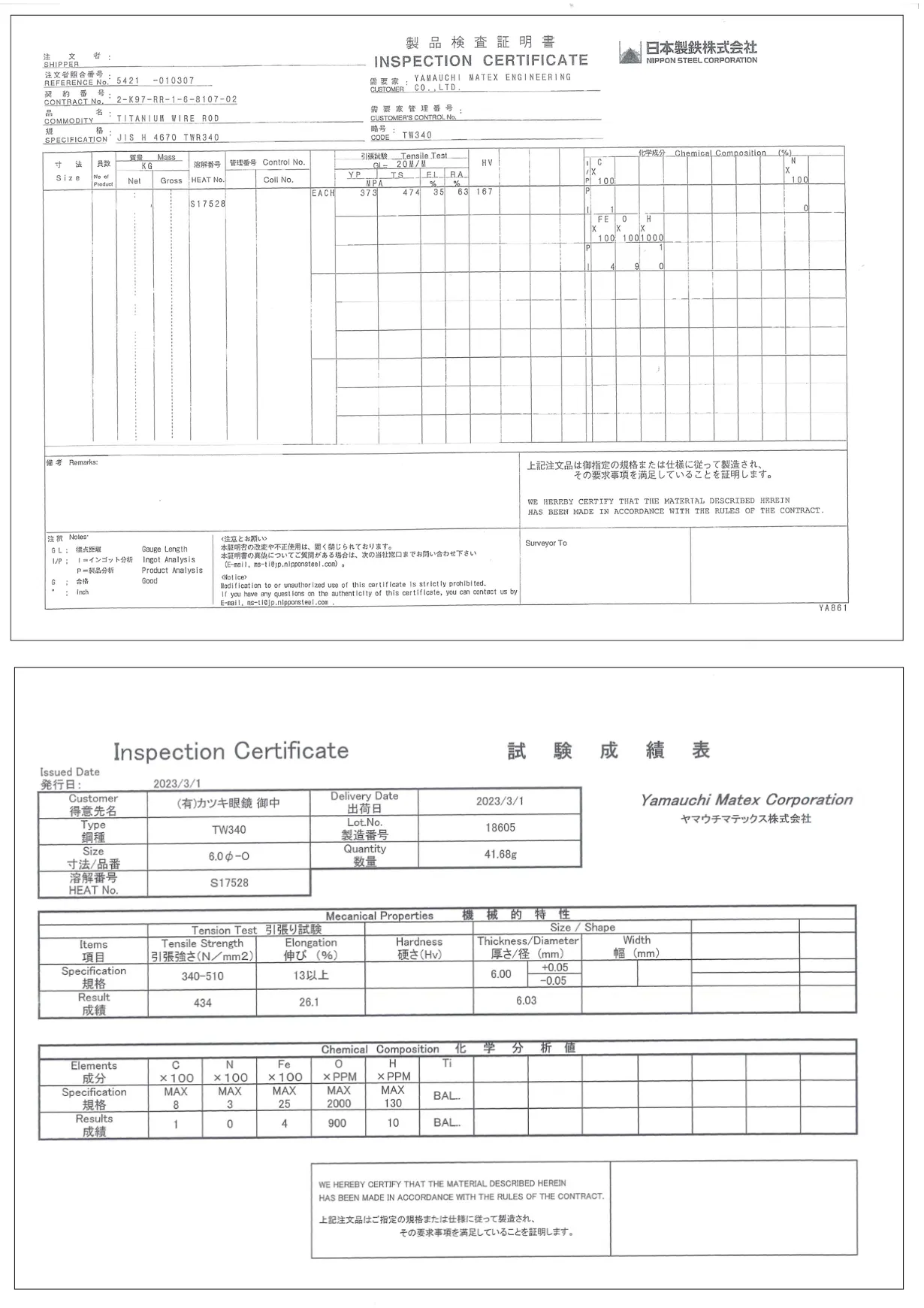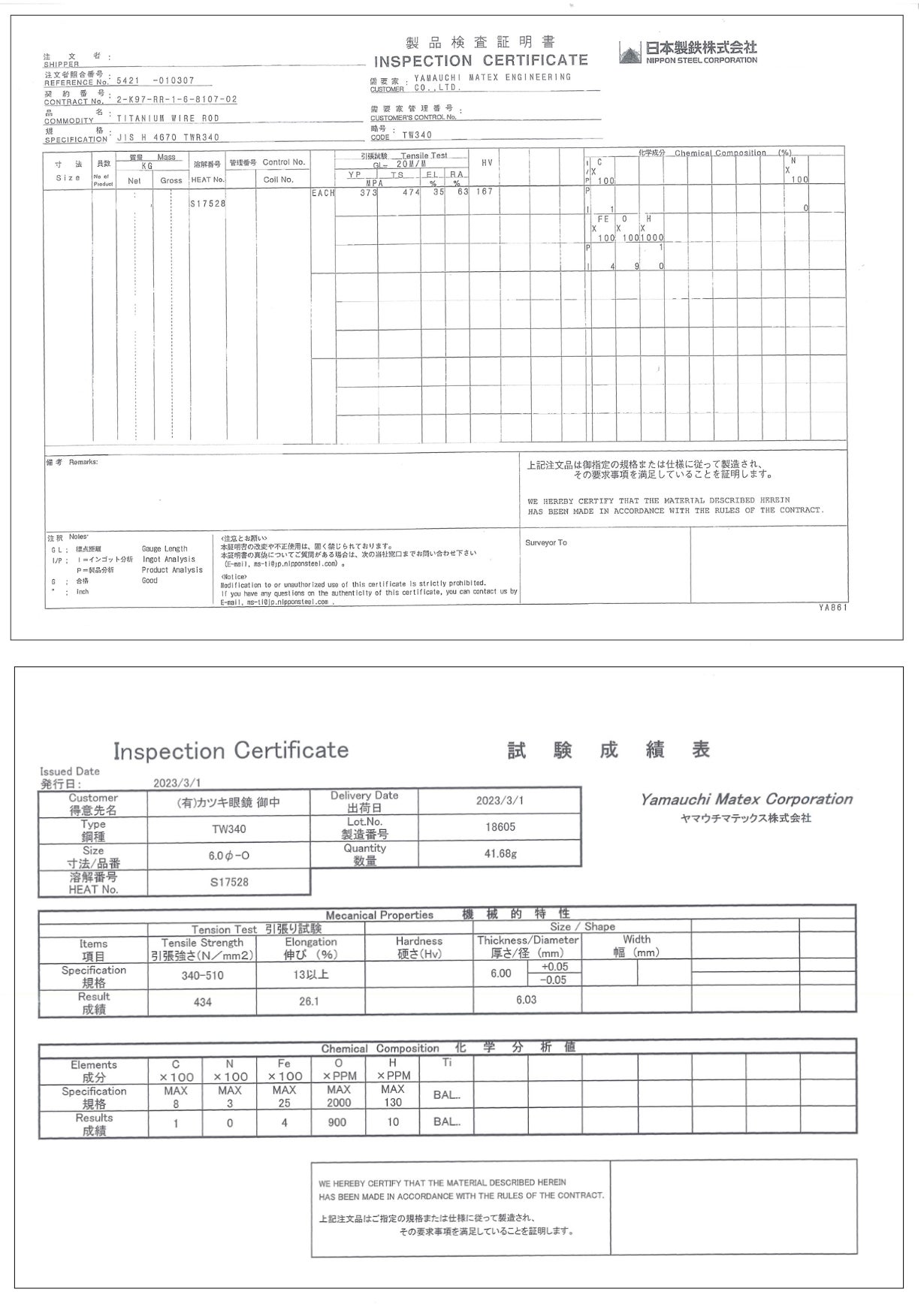 【材 質】 JIS純チタン2種 純度99.4%以上