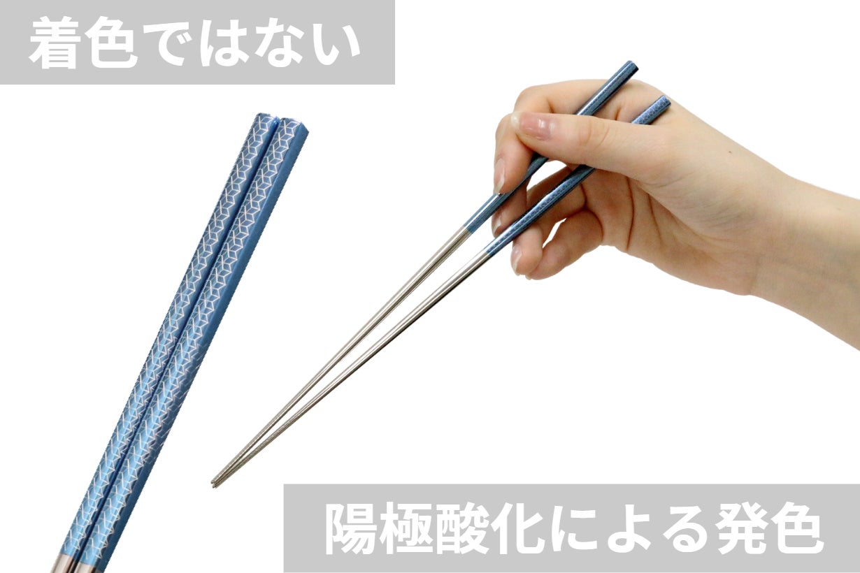 また、表面の酸化被膜により寂びること無く、折れたり箸先が痛んだりしないので、永くお使いいただけます。
