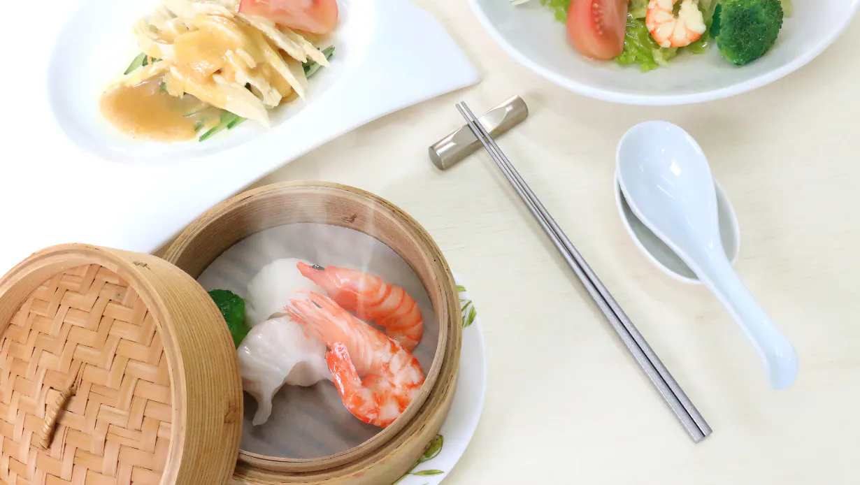 アツアツ蒸し料理も、チタン箸ならOK。