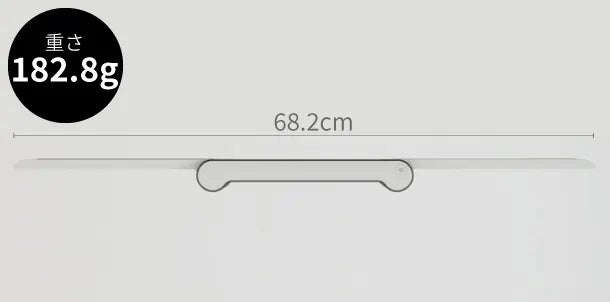 長さ25.3㎝、重さ182.8g。細長くて軽い。(クリップ2個含む場合:193.3g)軽くてスマートで持ちやすい形状で出張や旅先にも、気軽に持運べます。キャリーバックや鞄にスッと入ります。スマートで邪魔にならないサイズ感。自宅でも出先でも持運べてドコででも使えます。