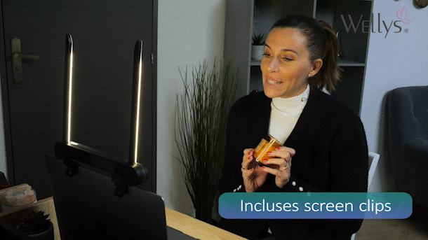 付属のスクリーンクリップで、パソコンに設置。ストレートでも。お好きな角度ででも。顔映りに合わせて。部屋の照明など、場所に合わせても、キレイを見つけられます。