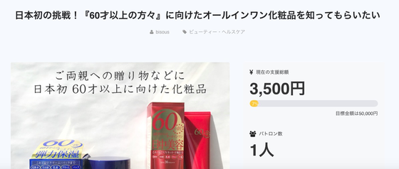 2018/04/19 19:07初めまして。株式会社ビズーコーポレーションです。 2015年に出来たばかりの会社ですが、この度クラウドファウンディングに初挑戦いたしました。 今回のプロジェクトですが「60の朝/夜」という、日本で初めて60才以上をターゲットにしたオールインワン化粧品です。 これまで60才以上に向けて作られたオールインワン化粧品は存在しませんでしたが、徹底的な開発を経て、初めて生み出した商品です。 ご本人でのご使用はもちろん、ご両親や知り合いの方への贈り物としても最適ですので、ぜひご覧いただきまして、ご検討いただけますと幸いです。 宜しくお願い致します。 もっと見る