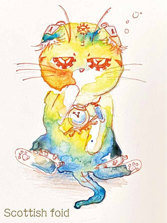 様々な画材を用いて猫とスチームパンクを用いた作品を描き、研究しています。現在はリアルに動物を描いたりグラデーションを意識した配色にしてみたりして描きます。また、こんな商品あったらいいなというデザイナー視点で考え、自由自在に紙を使って制作しています。保護猫活動にも目を向け始め、それらを自身のアートで猫の殺処分を少しでも減らしていくことを目指しています。
