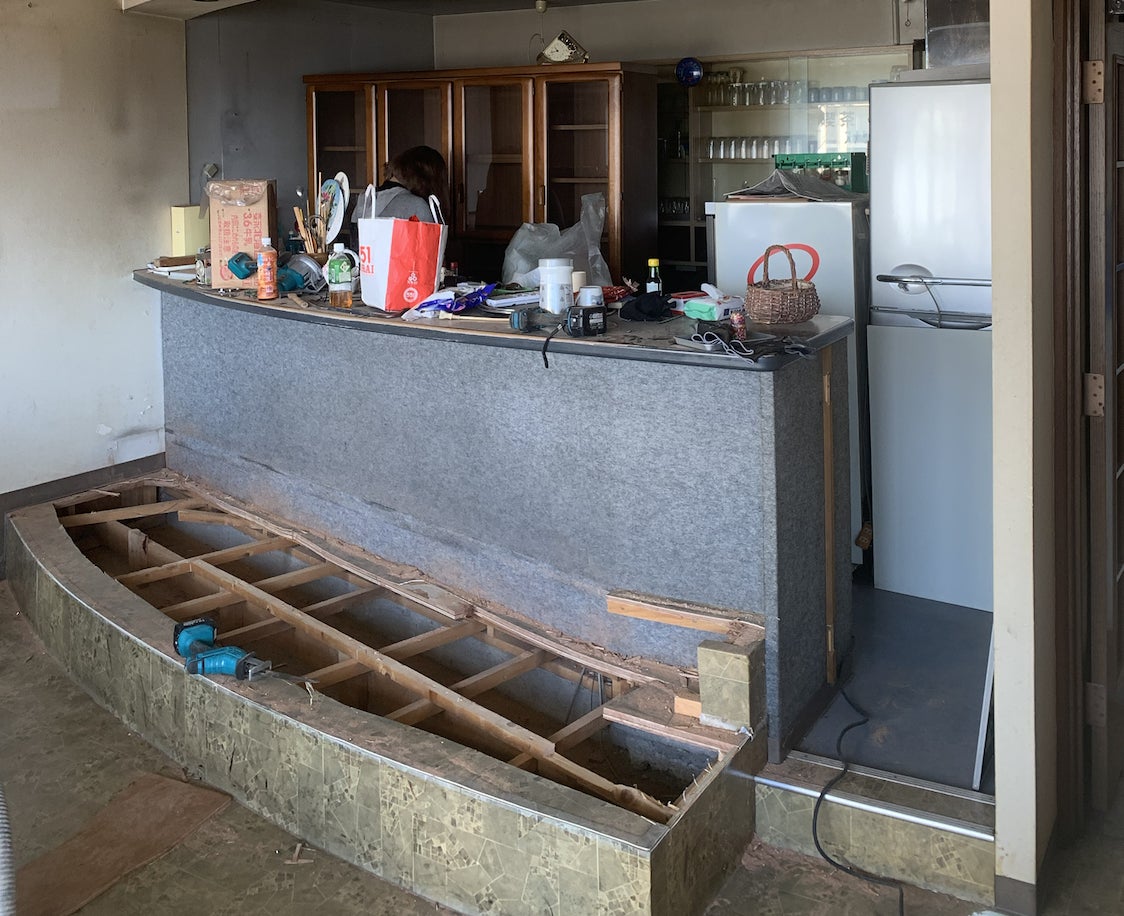 まずはカウンター周りを工事していきます!どうなることやら、、