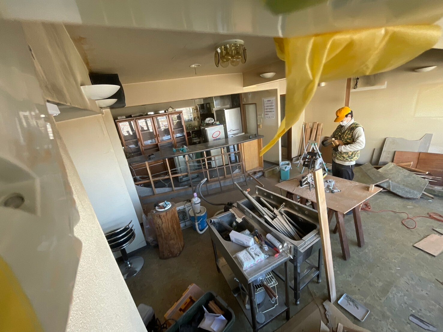 さて、3月1日から工事を開始して、最初の一週間はカウンターやいらない場所の解体など行いました。色々なものを壊して壊して、、、
