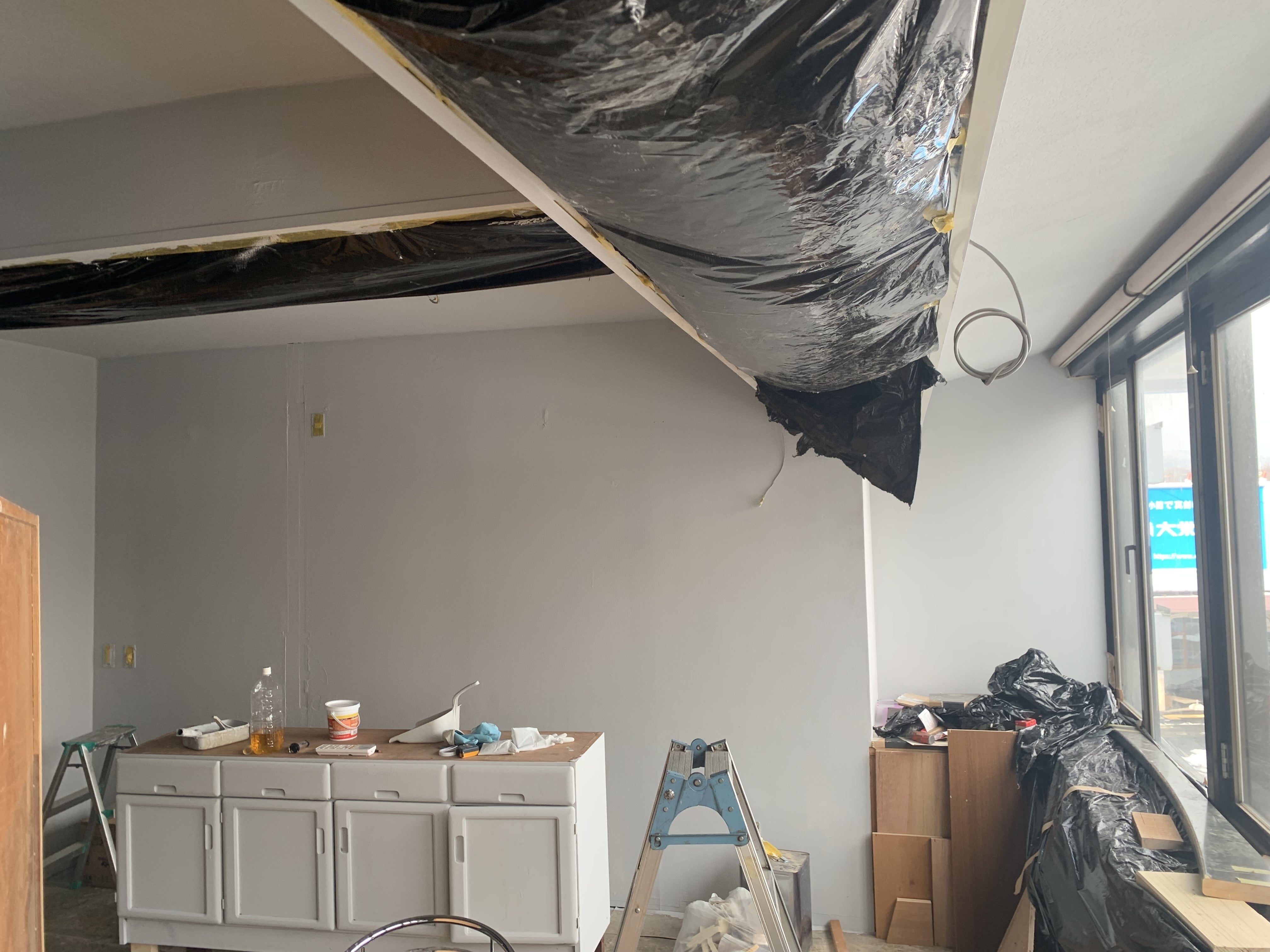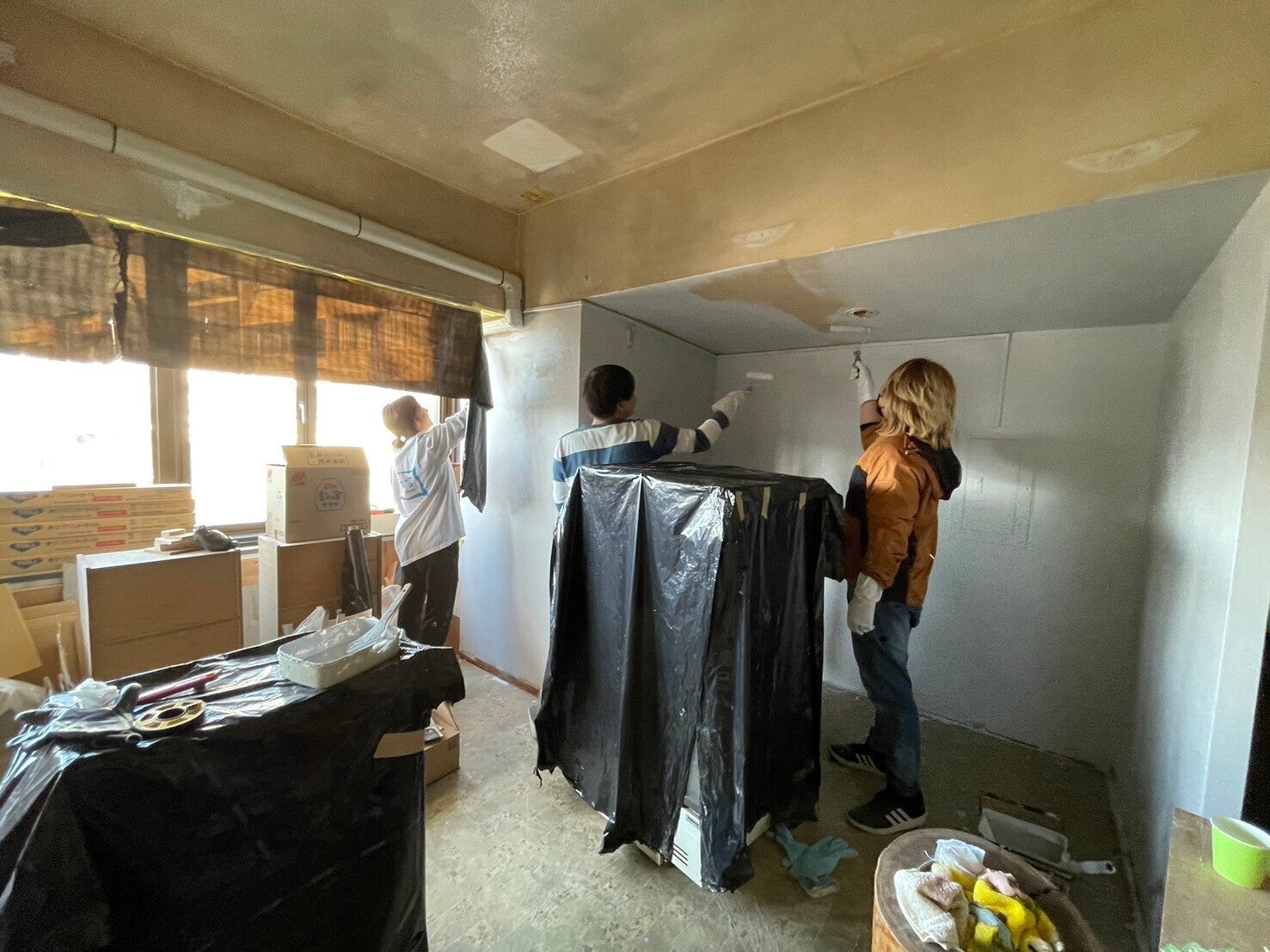 次の一週間は壁を白くなりました!友達に協力してもらいながら、進めました!