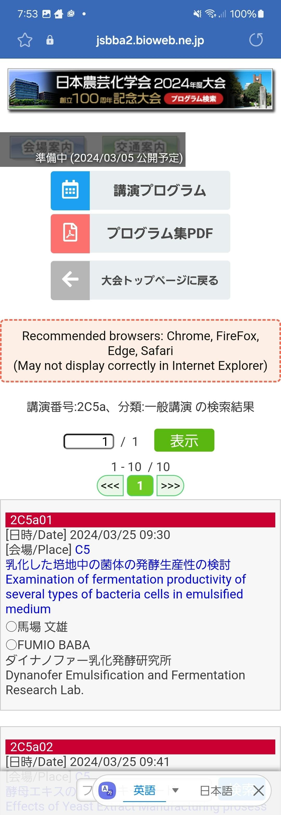 3月25日(月)9時30分から日本農芸化学会で今回の技術を発表予定予定です。タイトルと名前などが公表されていますので、ご案内します。c5会場です。宜しくお願いいたします。https://jsbba2.bioweb.ne.jp/jsbba2024/index.php?btn2_move=on&type=3&code=2C5a