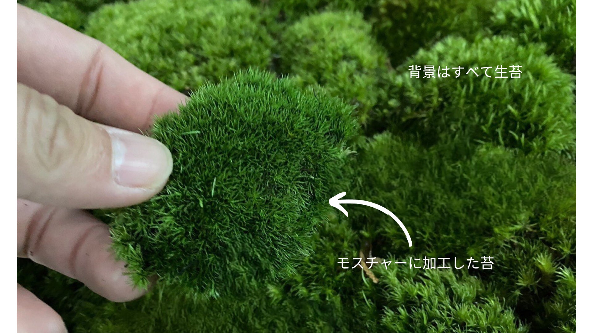 さらに、私たちが苔アート作品を扱う際、加工を施していない生苔は枯れてしまったり、海外へ出荷する場合には、虫や土がついていることで、検疫をクリアできない、などの問題がありました。