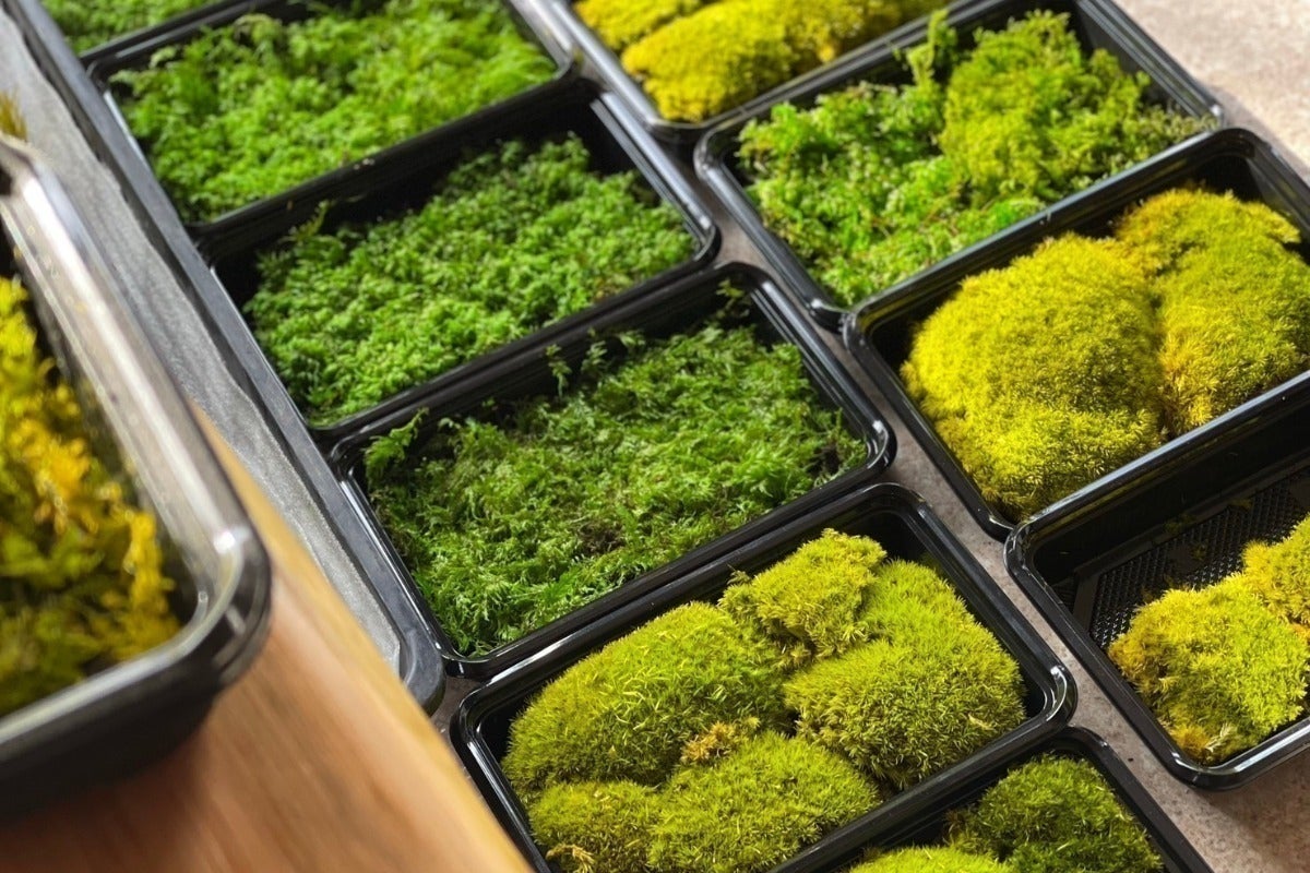 どうにかこの課題を解決し、幅広く、少しでも多くの方に苔アートをお楽しみ頂けるような苔を開発したい、という想いで一念発起し、2021年4月に新感覚”枯れない苔”、その名も「モスチャー」を開発いたしました。