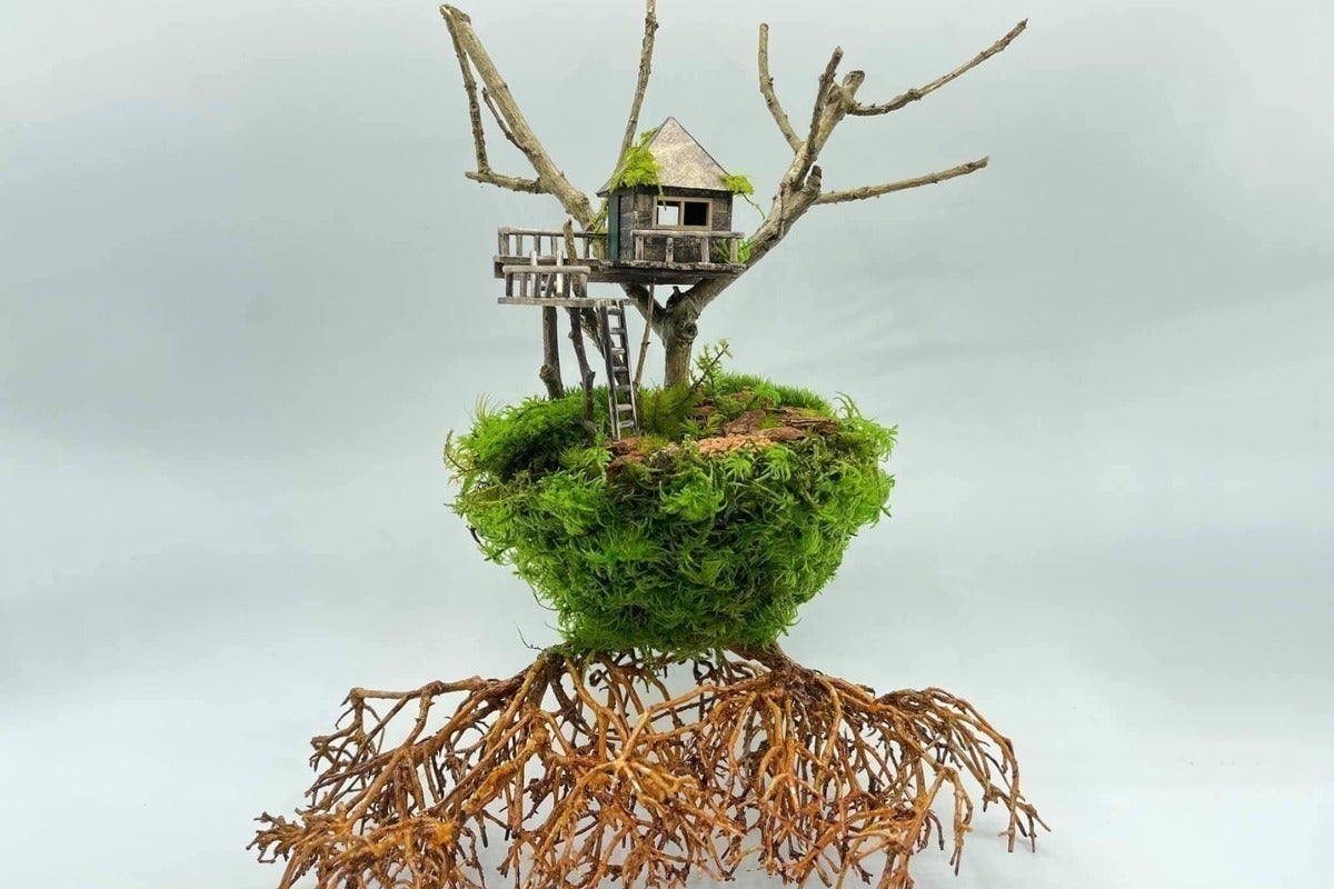 苔アート作家になるきっかけは、高校時代までさかのぼります。修学旅行で訪れた京都・西芳寺で、見渡す限り苔に覆われた庭園の光景に圧倒され、感銘を受けたことが活動の原点です。