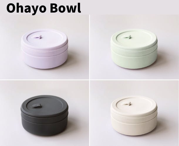 Ohayo Bowlは300mlと550mlの2サイズです。カラーバリエーションはOhayo Bentoと同じです。Ohayo Bowlの構造もOhayo Bentoと同じで一体型のシリコンで覆われています。特徴はOhayo Bentoと同じです。300mlはフルーツや前菜などにピッタリで、500mlはご飯を入れたりするのに丁度いいサイズです。