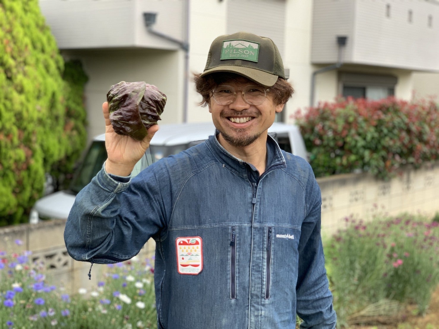 僕です 野菜やブルーベリーは収穫体験の開催や農園での直売、他に近所の飲食店さんなどの店舗を借りて委託販売もさせてもらったりもしています。直売方法は少し変わっていて畑に軽トラックを止めてマルシェ台替わりの荷台の上にタープを張って採れたて野菜を陳列して直売しています。野菜は畑から即補充できるのでお客様から朝採れならぬ”今採れ野菜”と形容されて喜ばれています。