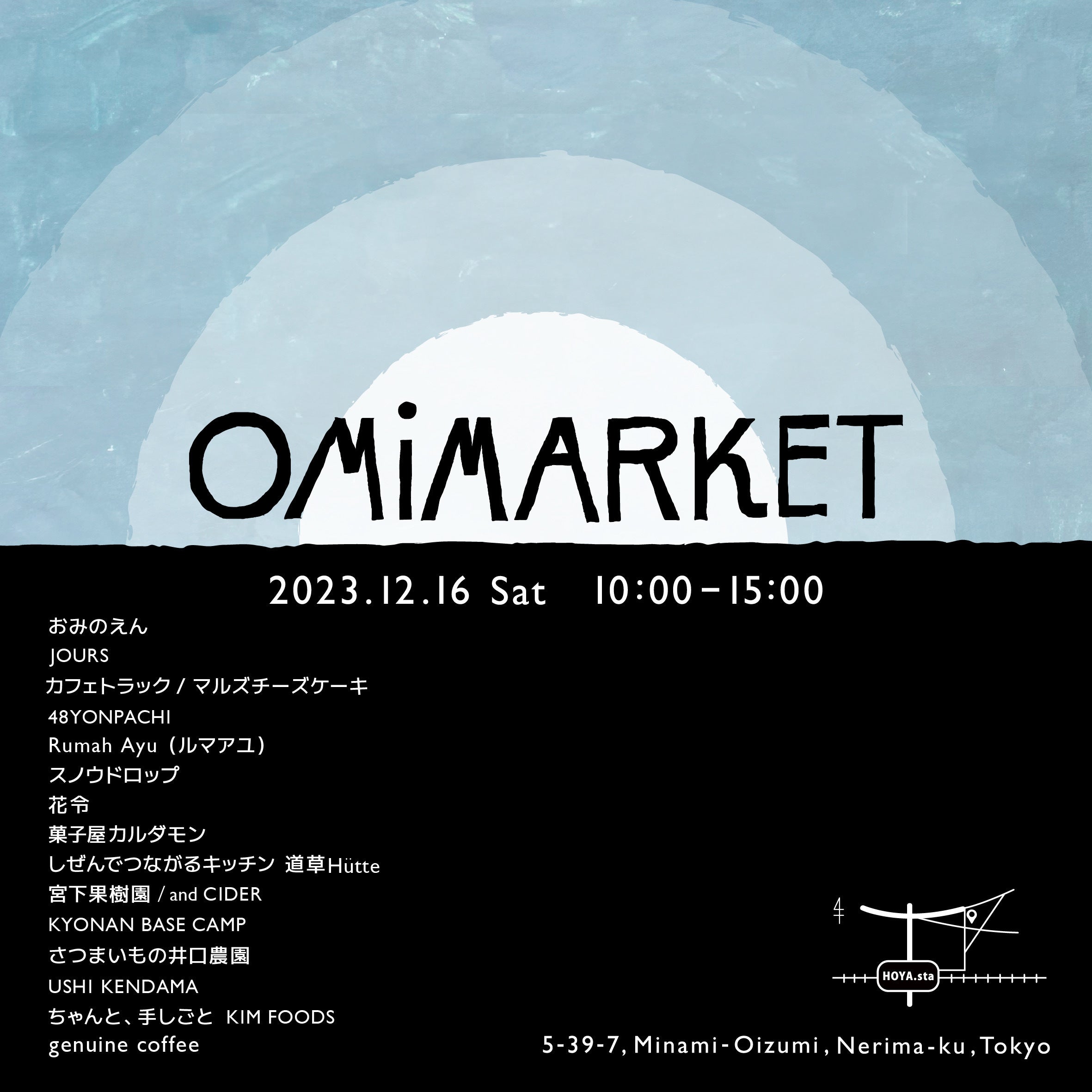 2024/05/06 22:25クラウドファンディングが終了して早1ヶ月が経ちました!ただいまリターンについて随時履行しているところですそれと同時に支援金によりオミマアップグレードのためDAIS DESIGN AND FIELDへ設営資材の発注などを行わせていただきましたそんなリニューアルオミマ皆さんにお披露目できるかもしれません!当園のジャガイモ畑が育つ頃毎年開催している初夏のオミマーケット!開催決定いたしました!皆さんの思いが詰まったオミマ!ぜひお越しください!ご来園お待ちしております!以下詳細をご覧くださいーー*ーー*ーー*ーー*ーー*ーー*ーー*ーー*ーーOMIMARKET vol.11【オミマーケット】日時 6/1(sat) 10:00〜15:00場所 東京都練馬区南大泉5-39-7 おみのえんオミマも今回で11回目!クラウドファンディングを経てただ今設営資材アップグレード中!もし間に合えば当日はアップグレードしたオミマで皆さまをお迎えすることができるかも知れません!(間に合わなかったらすみません)今回予定しているオミマアクティビティは・ジャガイモ収穫体験・インゲン収穫体験(※作物の生育状況で中止になる場合有り)・穴掘りチャレンジ!(※参加資格はクラファンにて穴掘り体験支援者のみ)そして豪華マーケット出店者(11店舗)JOURSカフェトラック/マルズチーズケーキ48YONPACHIRumah Ayu(ルマアユ)スノウドロップ菓子屋カルダモンしぜんでつながるキッチン 道草Hüttegenuine coffee東京ワイナリーDecafCoffeeStand toMe.(自店舗営業)おみのえん注意事項・園内は喫煙。・ゴミについては持ち帰りか各ブースにお渡しください。付近でのポイ捨てなどはしないようお願いします。・駐車場の用意はありませんので付近のコインパーキングをご利用下さい。・自転車は畑の中にお止めください。路上駐輪はしないようにお願いします。・入園料は無料ポスターデザインイラストレーターれのすか もっと見る