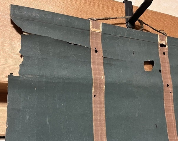 200年以上の年月が経ち、掛けることができないほどの破れが発生しています。