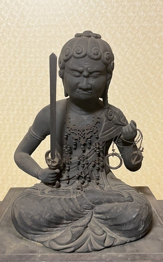 西福寺の不動明王(平安時代中期作)は髪先だけがカールする他に類例のないお姿です。そのお姿を描いたオリジナル御朱印帳となります。