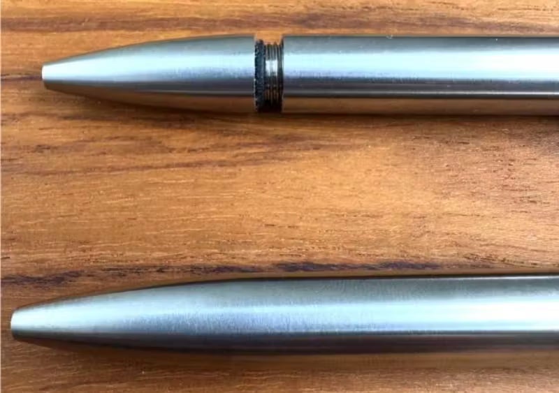 ですが、ボールペンに限っては、これまで、欠点として、e) 重たかったり、f) 短くて持ちにくかったりと、毎日持ち歩きたくなるような、チタンボールペンに出会えていませんでした。私が探していたのは、他の金属を使っていない、チタンだけで出来た、美しい軽量チタンボールペンです。