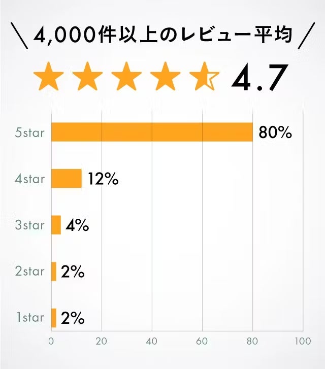 80%の人が5starを付けています。平均は4.7です。(2023年6月現在)