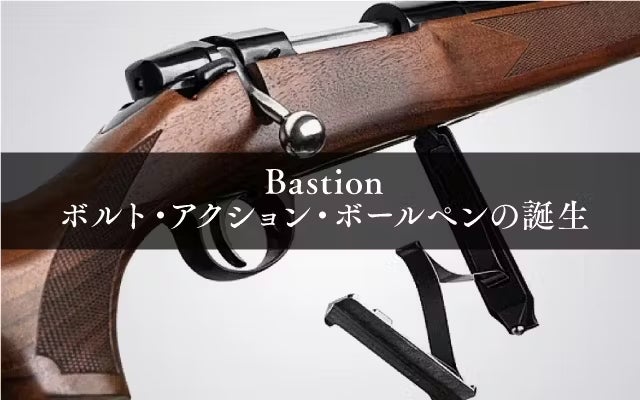 2017 年、Bastion社 CEO のMike Navitskyは、ボールペンにライフル銃で銃弾の装填に使われている、堅牢なボルトアクション・メカニズムを使う、と言うユニークなアイデアを思い付きました。この堅牢なメカニズムは信頼性が高く、満足の行く一連のペンが誕生する事となりました。素材はチタンの他、多種類の素材を用いられています。