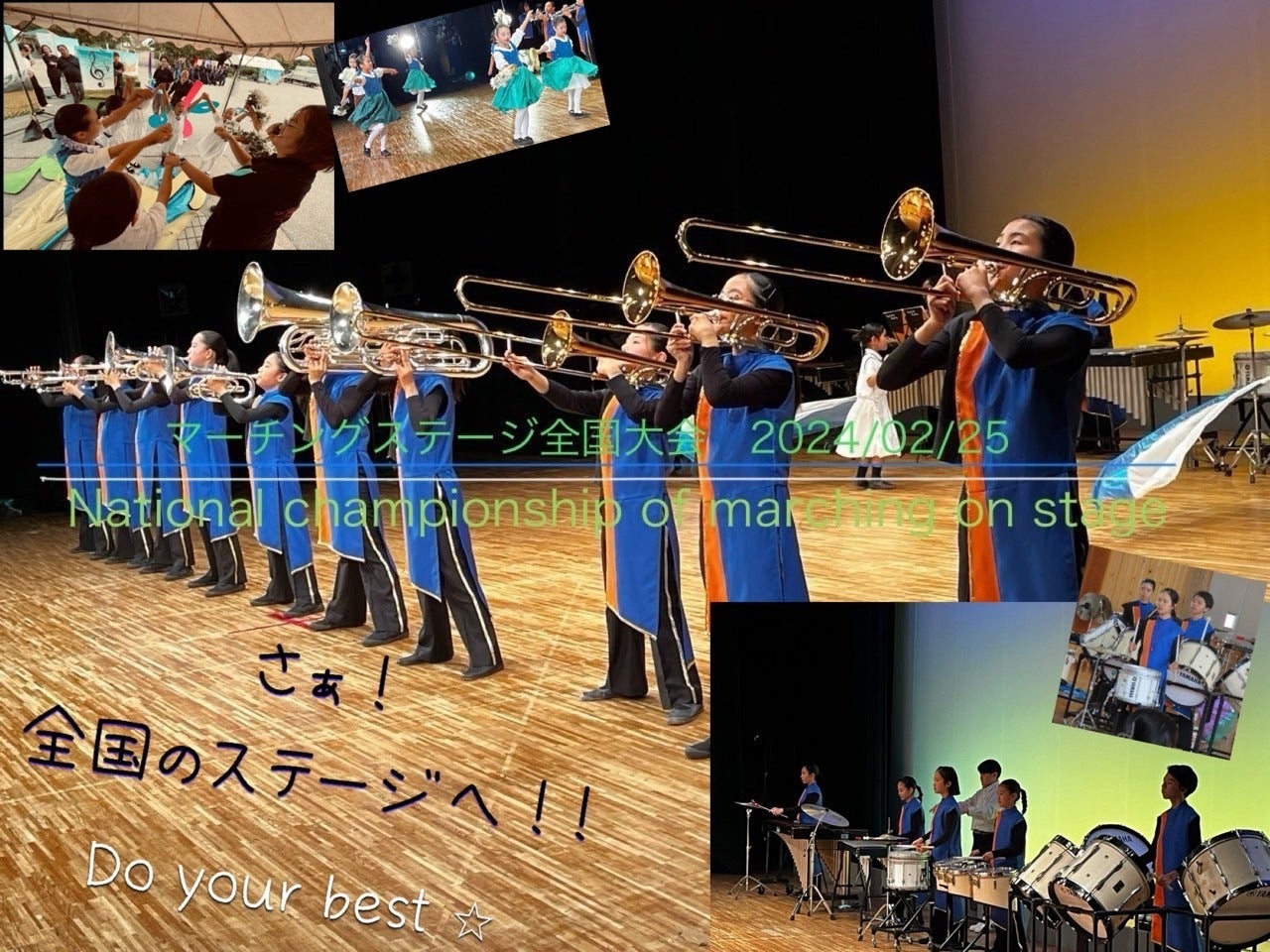 第22回マーチングステージ全国大会無事、終了いたしました。結果は、銀賞でした!本番前は緊張で涙するメンバーが多数‥「大丈夫だよ」と声をかけ合いステージへ上がりました。でもステージに立つとみんなの表情は輝き、いつもの練習どおり演奏することができました!本番後も子ども達は涙涙。このステージがみんなの人生の経験となり、また1つ成長できたことと思います!これまで応援していただきありがとうございました!まだしばらく、活動報告は続く‥かもです♪