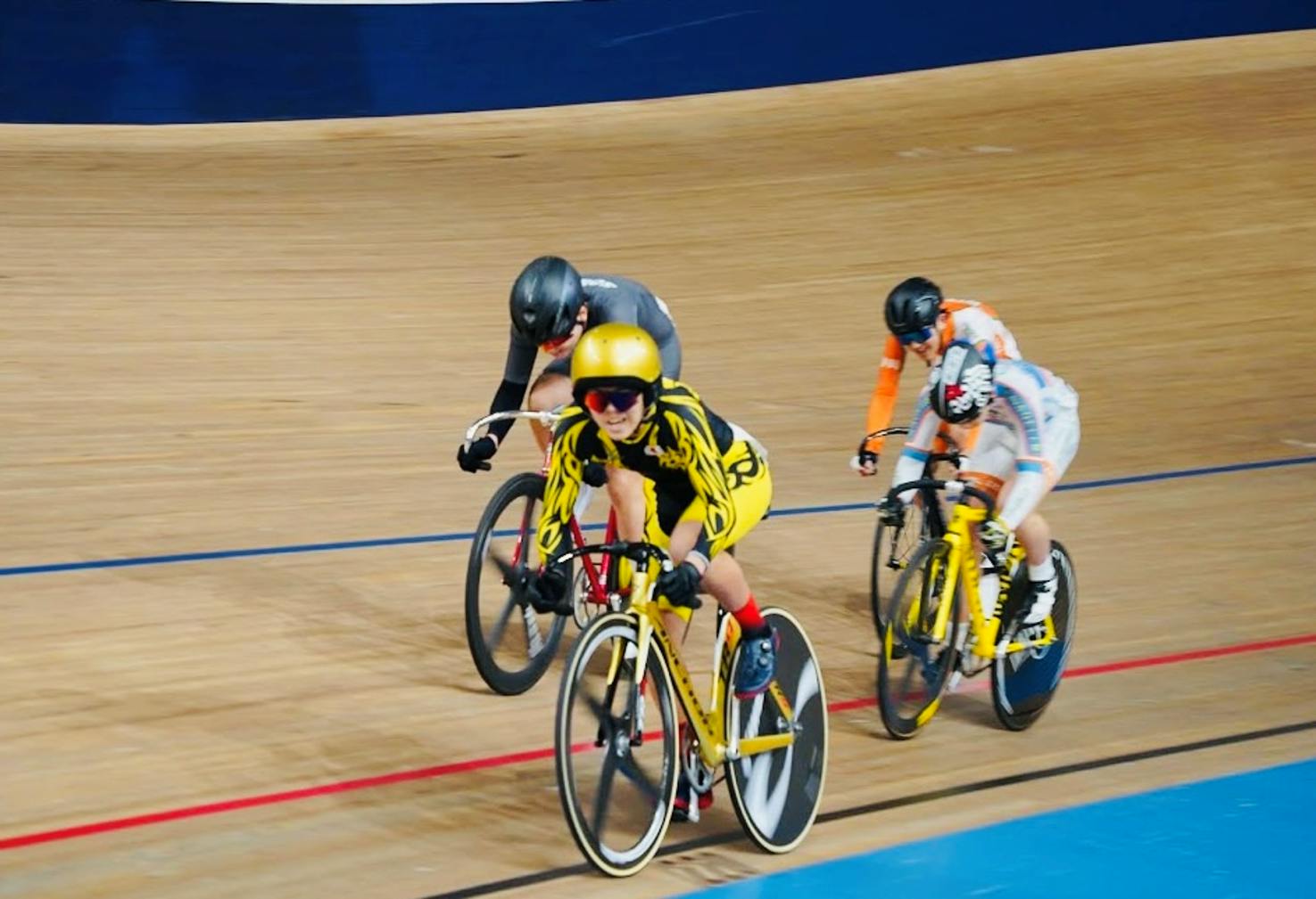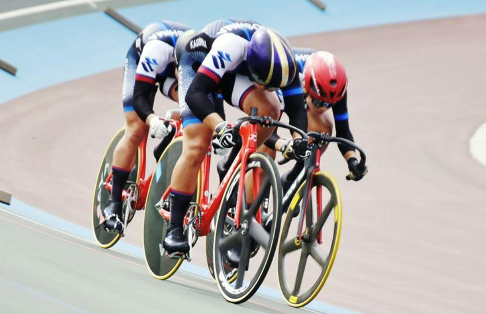 トラック競技用の自転車はブレーキや変速ギアがなく、ペダルと足が固定されていて常にペダルを踏み続け、危険と隣り合わせの競技とも言えます。