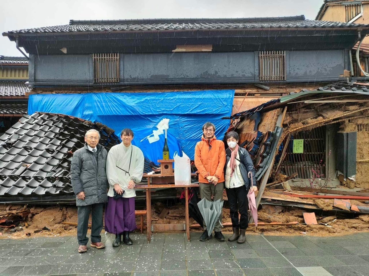 解体工事を行う前には、建物への感謝と安全な工事のために七尾市にある本宮神社の櫻井宮司にお祓いをしてもらいました。明治の40年頃に建てられて、100年の建物でした。家族の思い出(縁側で子どものころにアイスクリームを食べたことが思い出されてなりません)、お客様との会話の思い出、そんな思いがあふれるお店でした。感謝を伝えました。