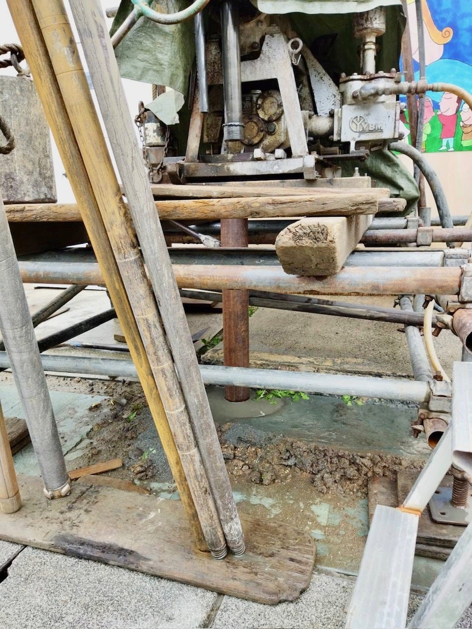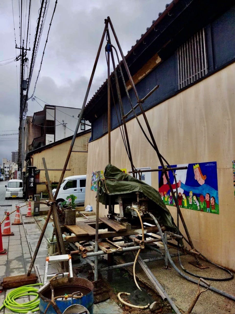 先日より地盤調査のため、ボーリング調査を始めました。高澤ろうそく店がある地域では地震による液状化もあったため、どの程度の地盤改良が必要となるのか、そのための調査を行っています。