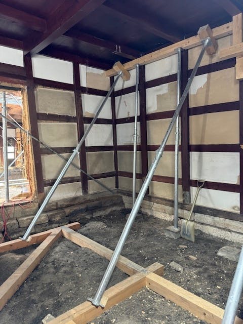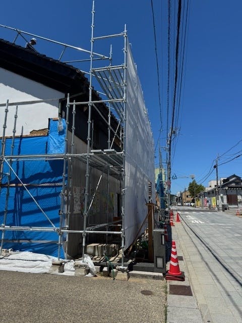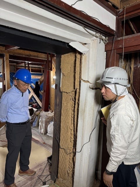 私たちは能登半島地震によって全壊判定となりました高澤ろうそく店の建物を再建するにあたり、修復をして再建するという方針を立てました。もとどおりの高澤ろうそく店の姿にしたかったので、解体せずに修復という方法をとりました。