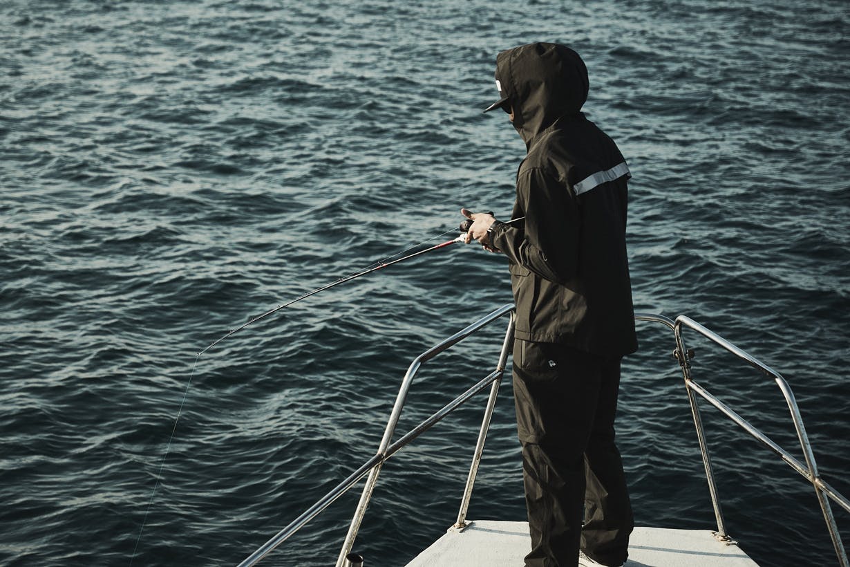 嵐にも耐えうる20,000mmの耐水圧でしっかりと雨の侵入を防ぎます。もちろん、濡れた場所に膝をついたり、座っても大丈夫。オフショア(船)やバスボートなどの釣りでも安心です。