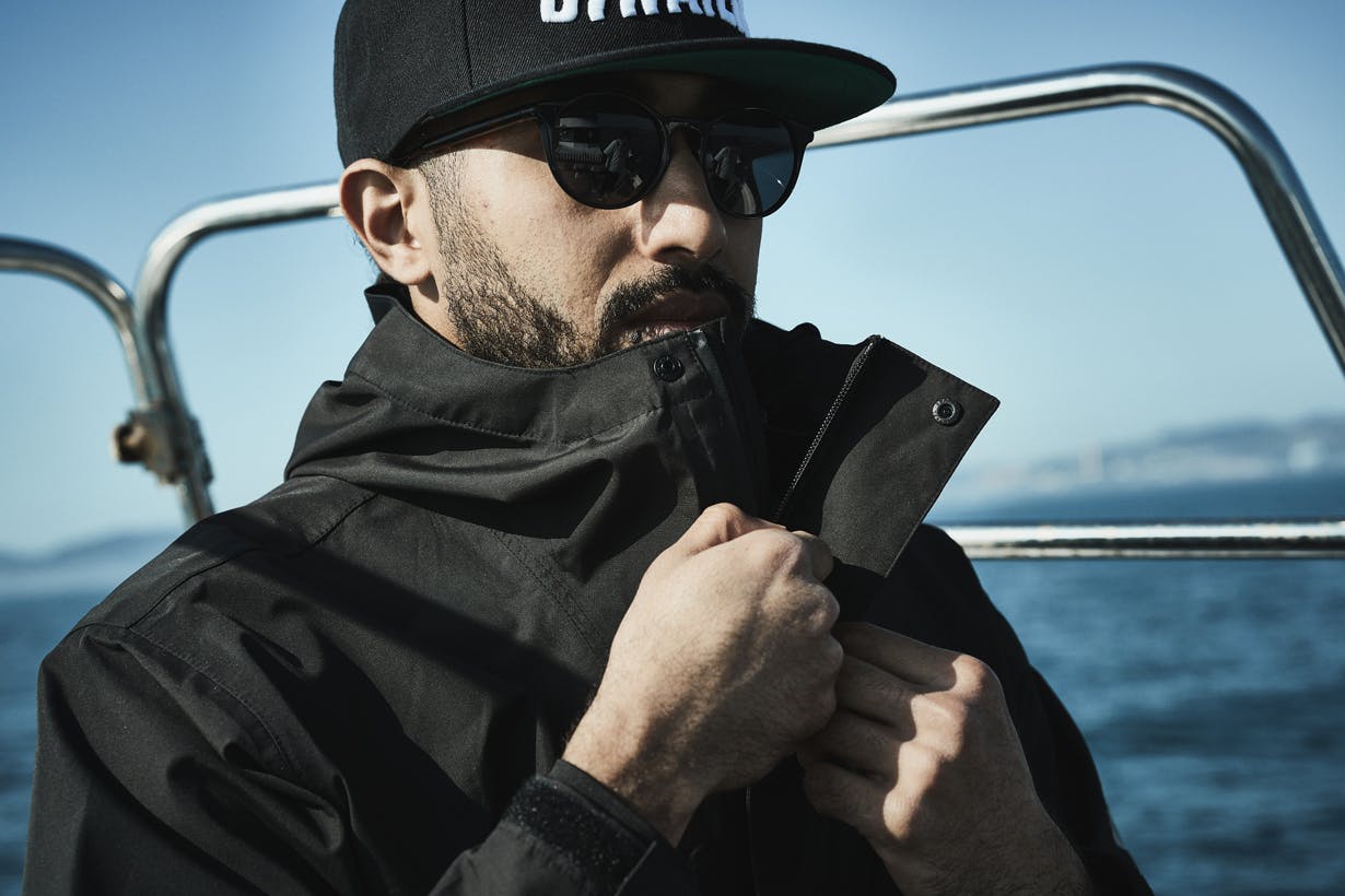 見た目は普段も着れそうなデザインのジャケットでありながら、「耐水圧20,000mm」「透湿性30,000g/㎡/24hr」の嵐にも耐えうるレインジャケット。