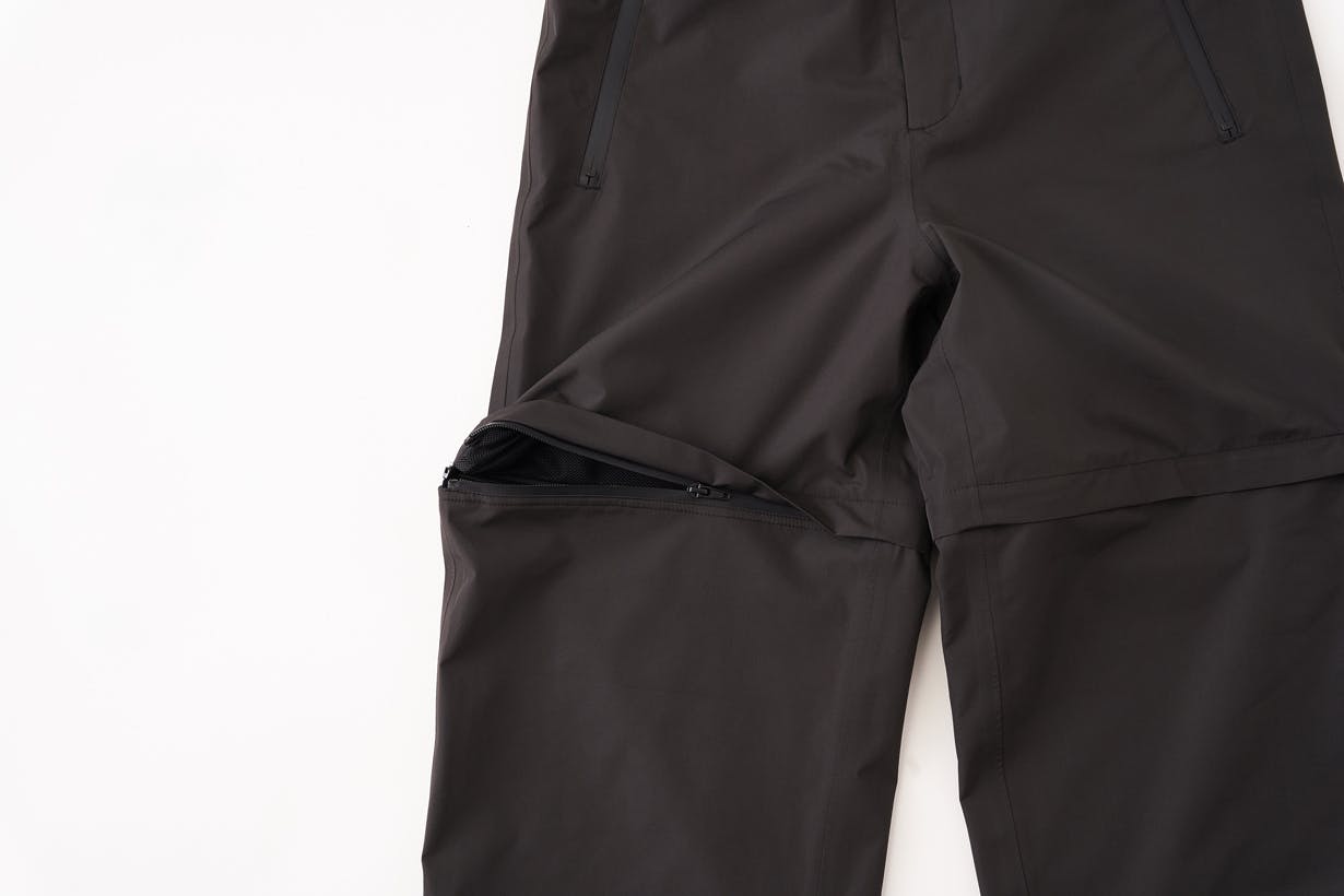 膝下部分とパンツ本体部分は、止水ファスナーでつながっており、ここを外すことで、ショートパンツスタイルに変更可能となっています。