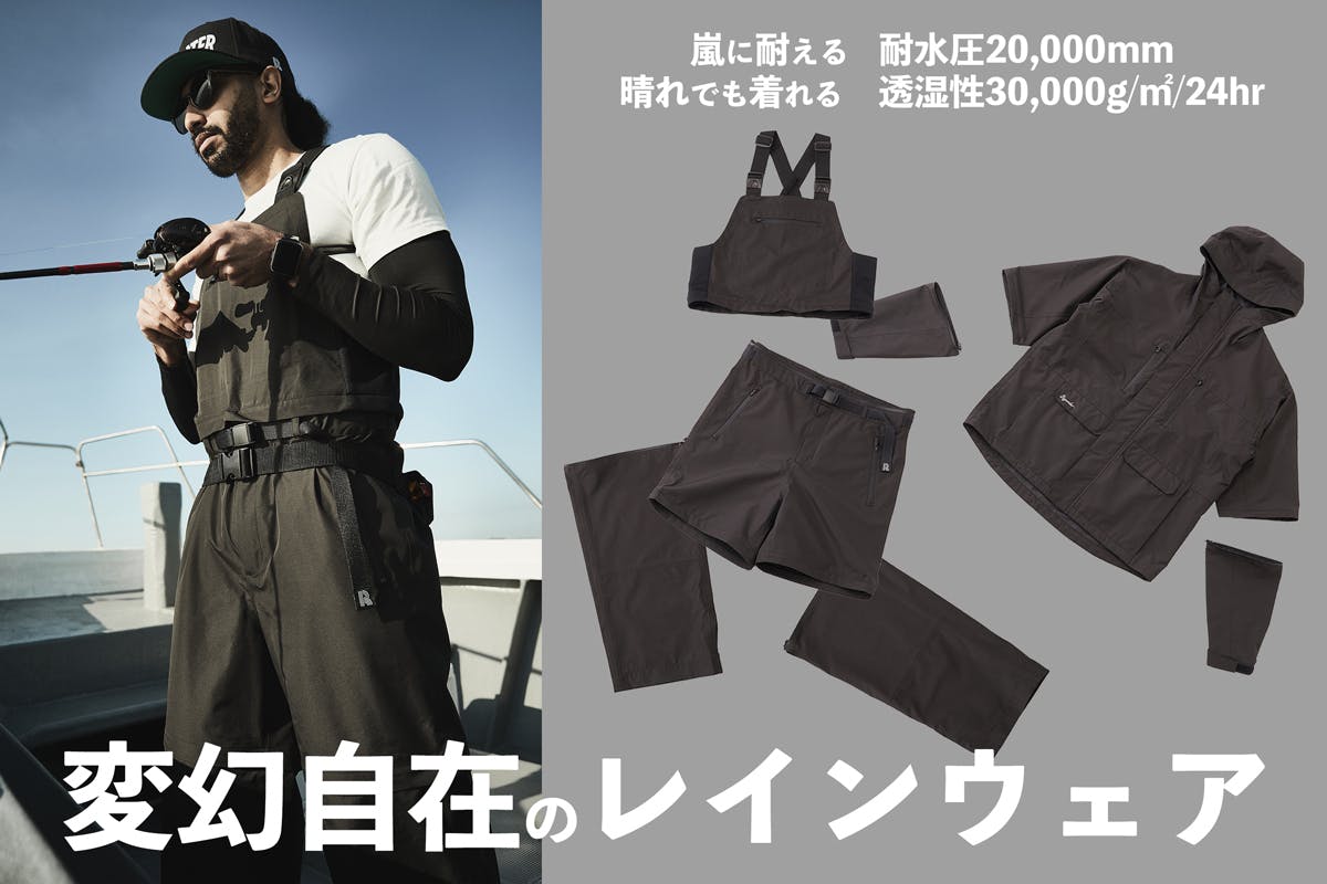 ▼半袖・長袖ジャケット&ビブ・ロング・ショートパンツになる"蒸れない"レインウェア