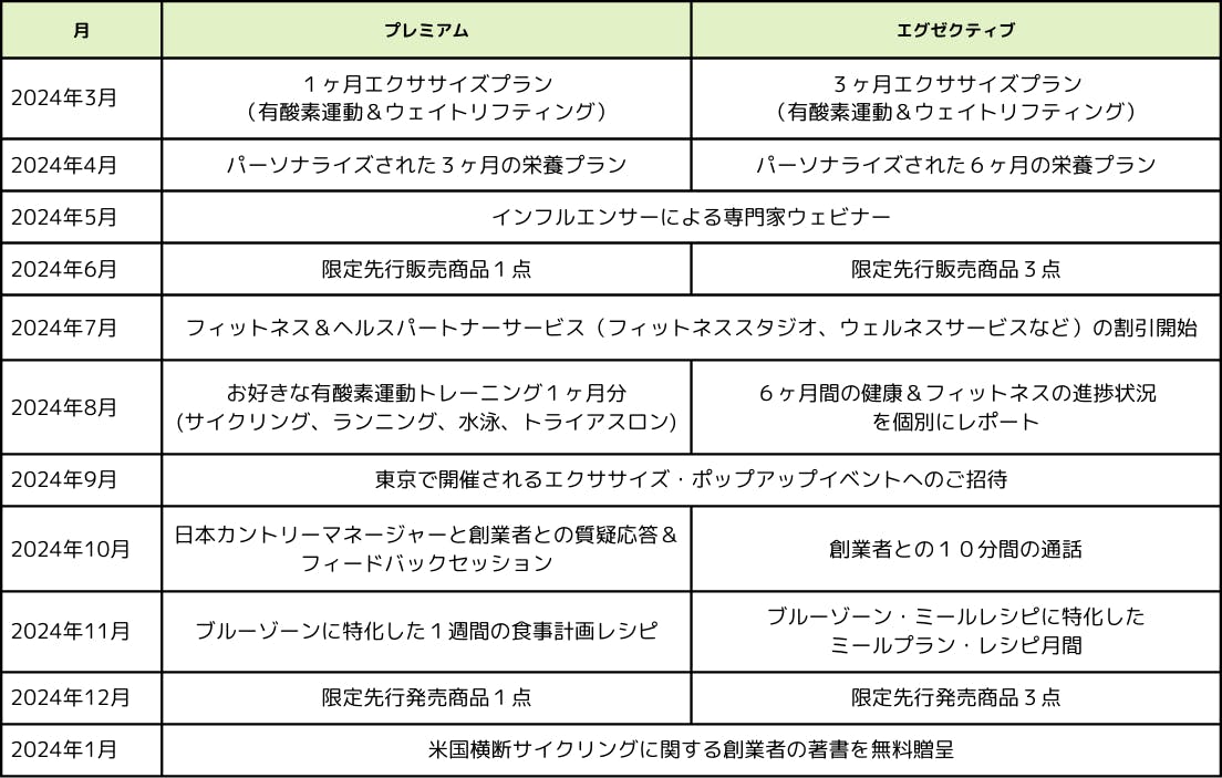 全商品50%割引・レシピデータベースへのアクセス・栄養コンシェルジュによる毎日の栄養リマインダー・モチベーションアップ・アドバイスが含まれます。
