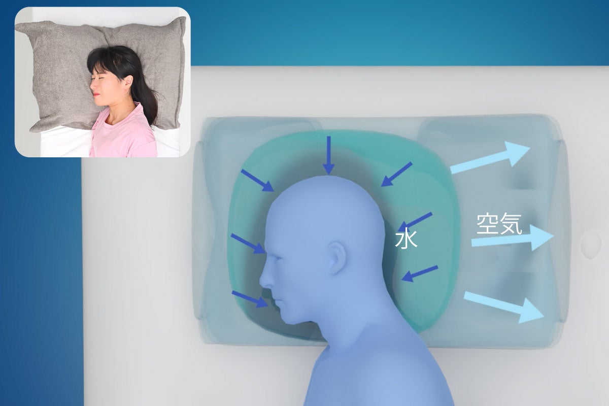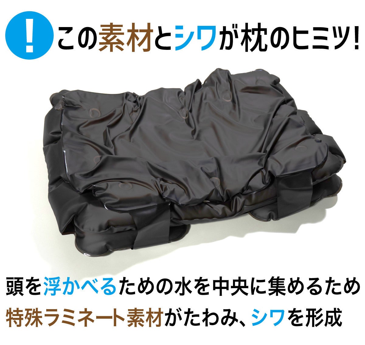 頭の下に溜まった水の層は、あなたの頭のかたちに合わせて形成され、やさしくささえてくれます。