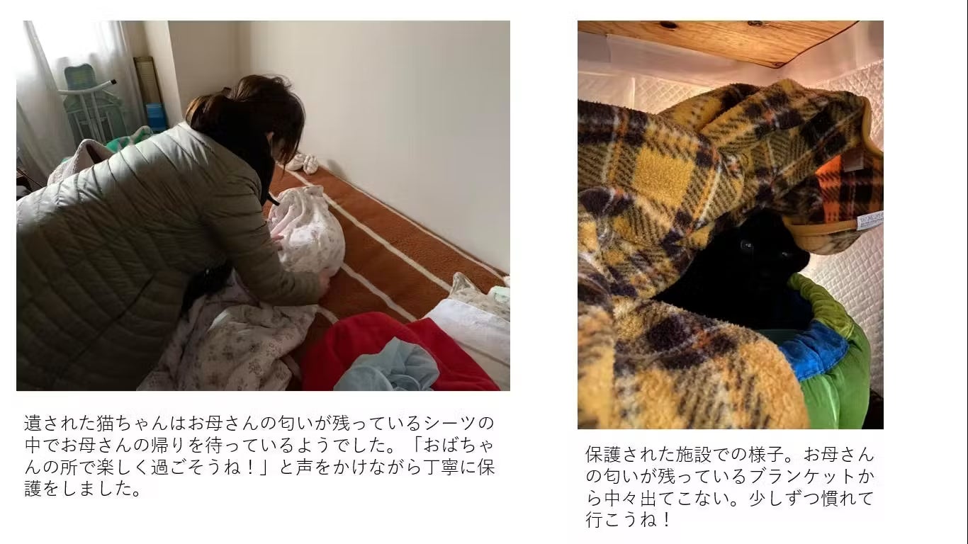 「ラブポチ信託🄬」のサービスを提供して4年余りですが、既に、飼主様が亡くなり猫ちゃんを保護する事例が発生しました。亡くなった飼主様は生涯独身を貫き通した女性で85歳。そして猫ちゃんは12歳の男の子。最初の相談は飼主様の甥御さんでした。甥御さんは高齢の叔母様の面倒を看られていたのですが、少し認知の傾向が出てきたという事で、叔母様に施設への入居を提案したそうです。しかし叔母様は猫ちゃんの事がどうしても心配で施設への入居を拒否していたそうです。そこで甥御さんからピーサポネットに相談が入り、ラブポチ信託🄬のご説明を丁寧に実施し、ご理解いただいた上で、叔母様に猫ちゃんの事は心配ないと伝えてもらうと、とても安心されたらしく、ニコニコして施設への入居を快諾されたそうです。その後ラブポチ信託🄬のご契約をしたのですが、契約から1週間後に突然飼主の叔母様が亡くなってしまいました。私も叔母様の訃報を聞いた時にはびっくりしました。その後残された猫ちゃんの終の棲家となる施設のオーナーと一緒に猫ちゃんの保護に向かいました。保護に立ち会っていただいた甥御さんからは「あの時契約していて本当に良かった!この仔も幸せに暮らせるし、天国に逝った叔母も喜んでくれていると思います。」と、とてもうれしいお言葉を頂戴しました。