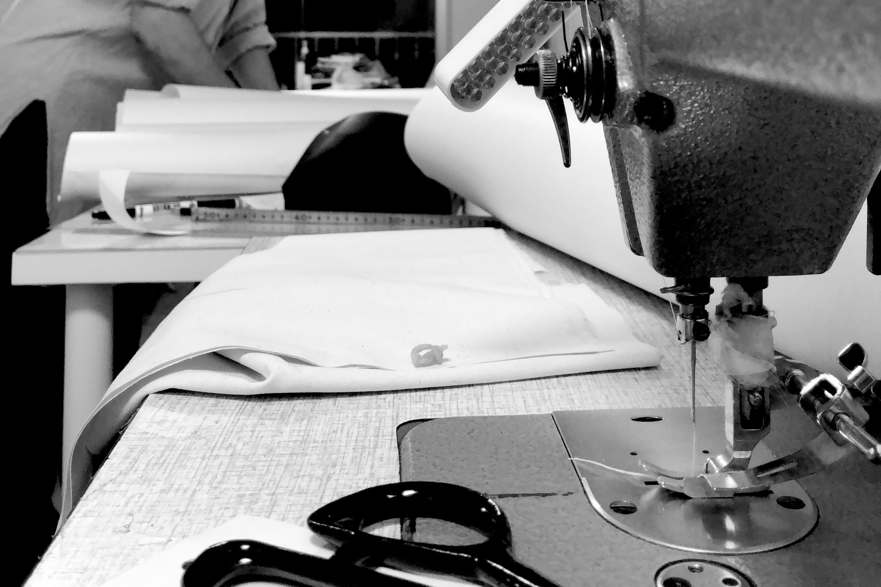 ①中古または工場さんの人づてからミシン・アイロン等の縫製機材の購入