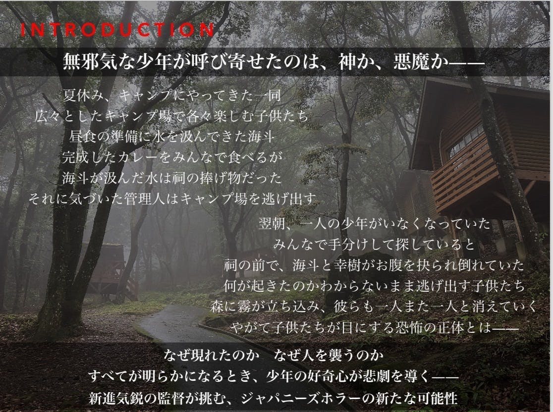 若手映画監督によるホラー映画を製作。本格的に演技がしたいキャストが集まりました。製作スタッフがキャストに対して綿密なサポートや演技指導を提供することで、映画の品質と演技のレベルを向上させる役割を果たします。