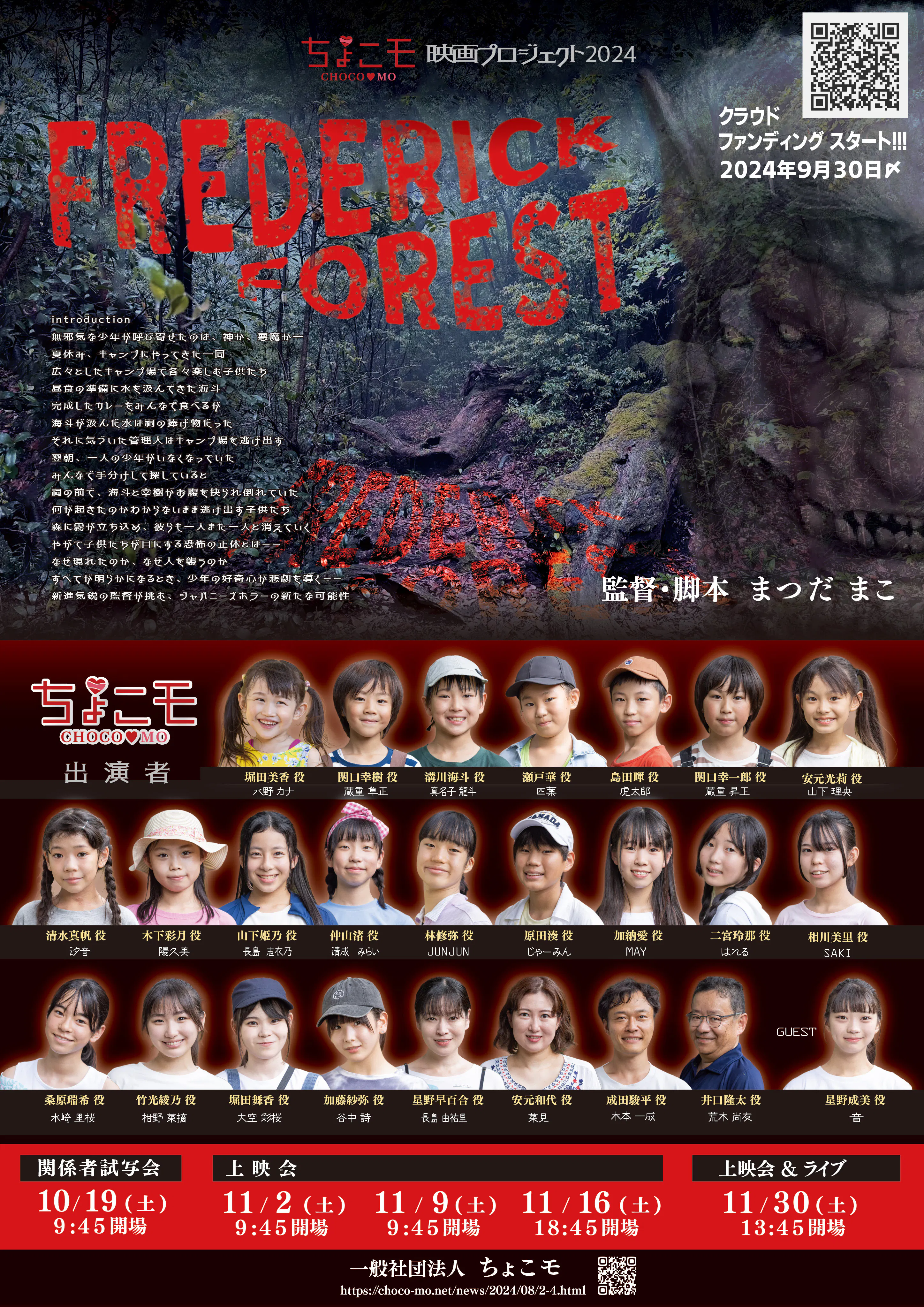 2024/10/22 10:502024年10月19日 福岡市立中央市民センターにて 関係者試写会を開催させていただきましたご来場いただきました関係者の・クラウドファンディングにてご支援頂きました皆様誠にありがとうございました。舞台挨拶ではまつだまこ監督にもご登壇頂き出演者から撮影でのエピソードをお話させていただきました。いよいよ11月より上映会スタートです!!たくさんの方の御覧いただけたら嬉しいです。ご来場お待ちしています!!前売りチケットのご購入はこちらから⇒https://chocomo.official.ec/ もっと見る