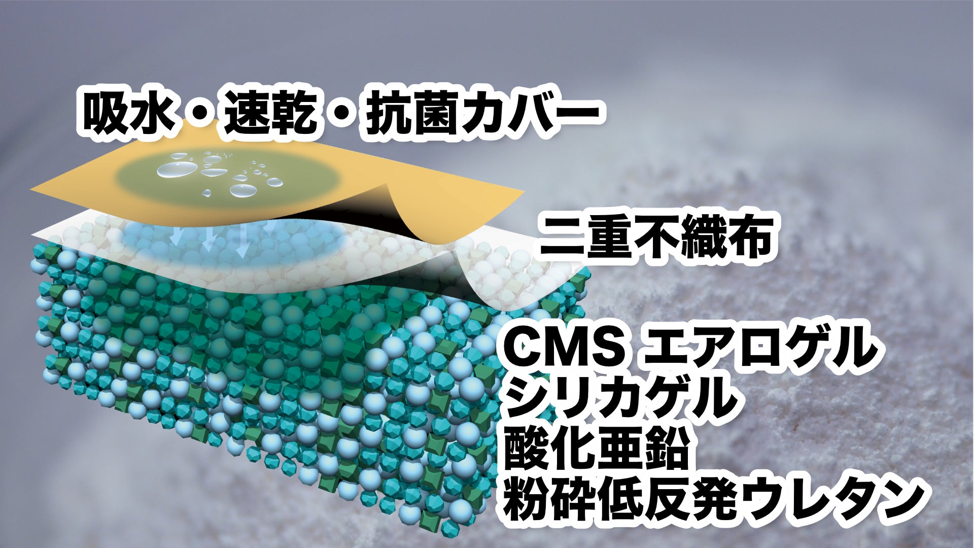 ■インナー材質 二重不織布(ポリエチレン・ポリプロピレン)/CMSエアロゲル粉末/シリカゲル粉末/ミョウバン粉末or炭酸ナトリウム粉末/酸化亜鉛粉末/粉砕低反発ウレタン/