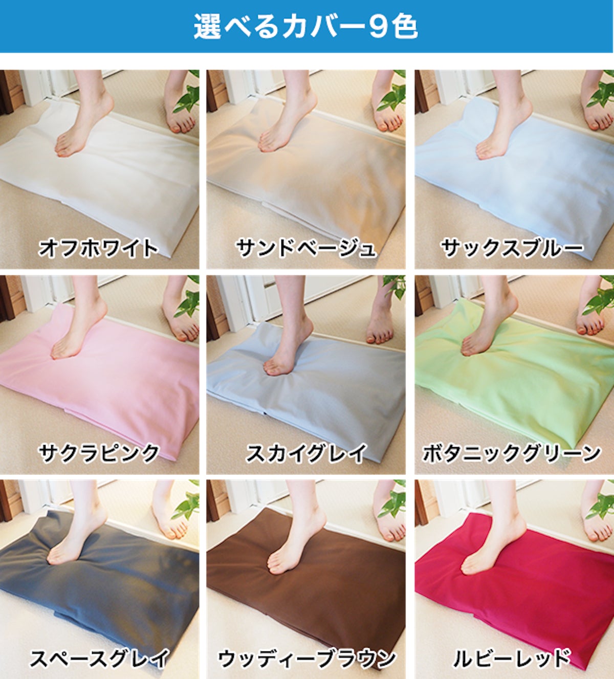 カバー素材には吸水性が高く、しかも上質な踏み心地を兼ね備えている厳しい仕様にこだわりました。 やっぱり日本製です。